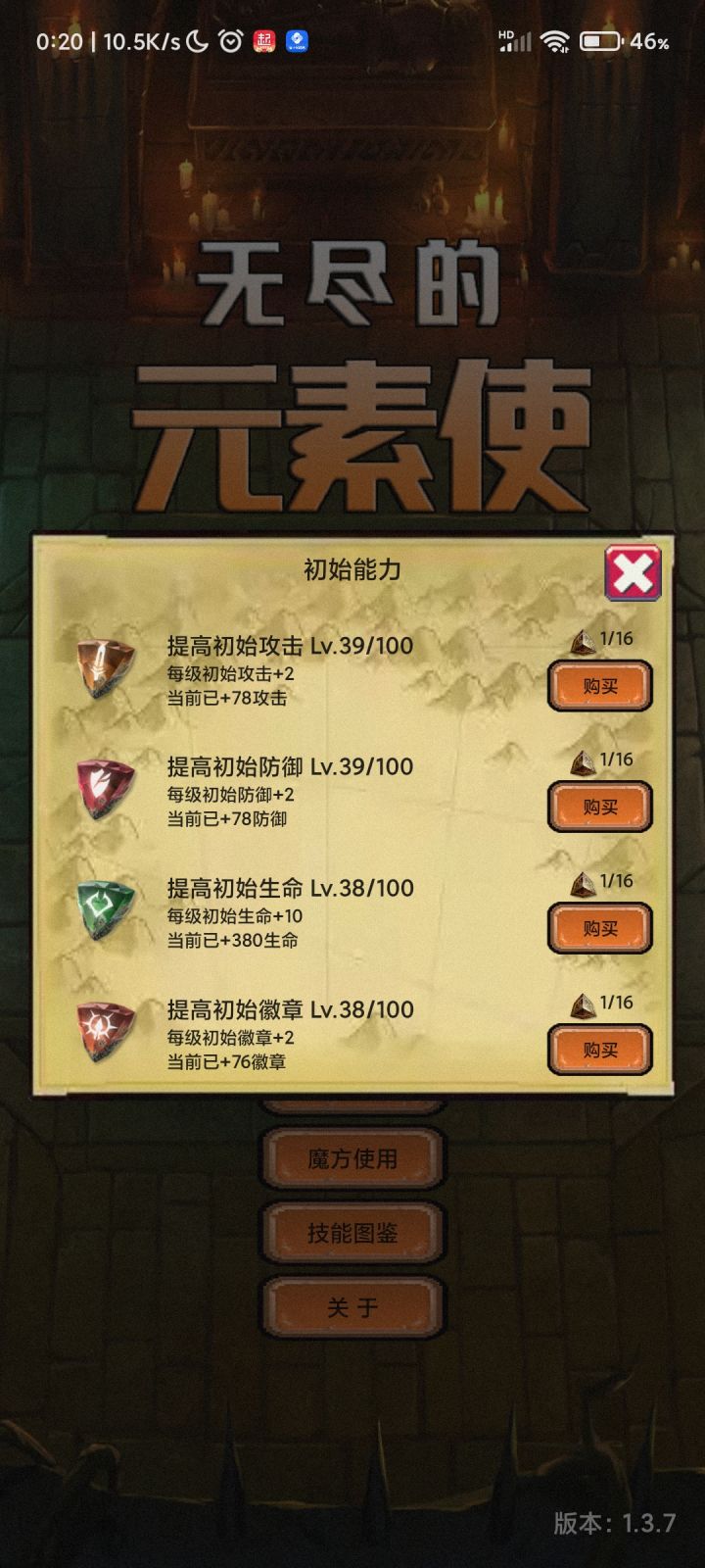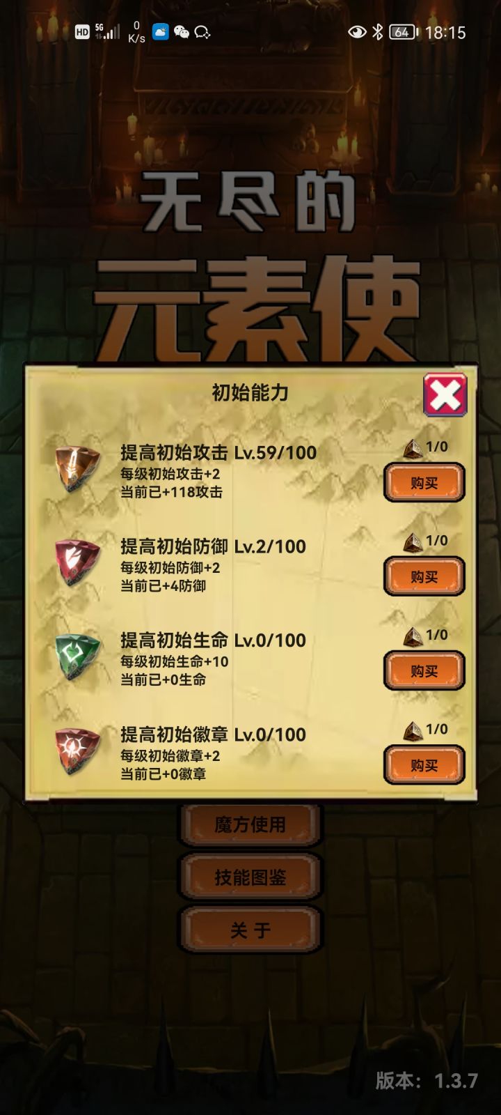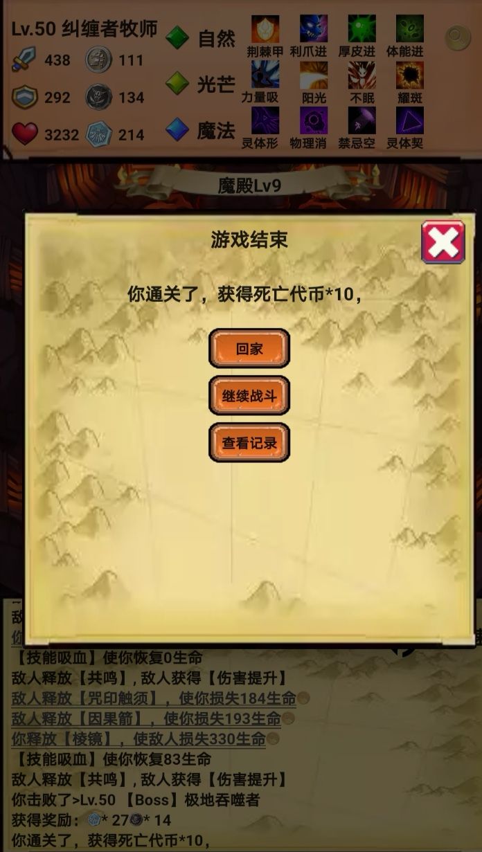 代币强化情况,我记得我首次通关应该是攻击强化60+左右,其余就随便点了几点。