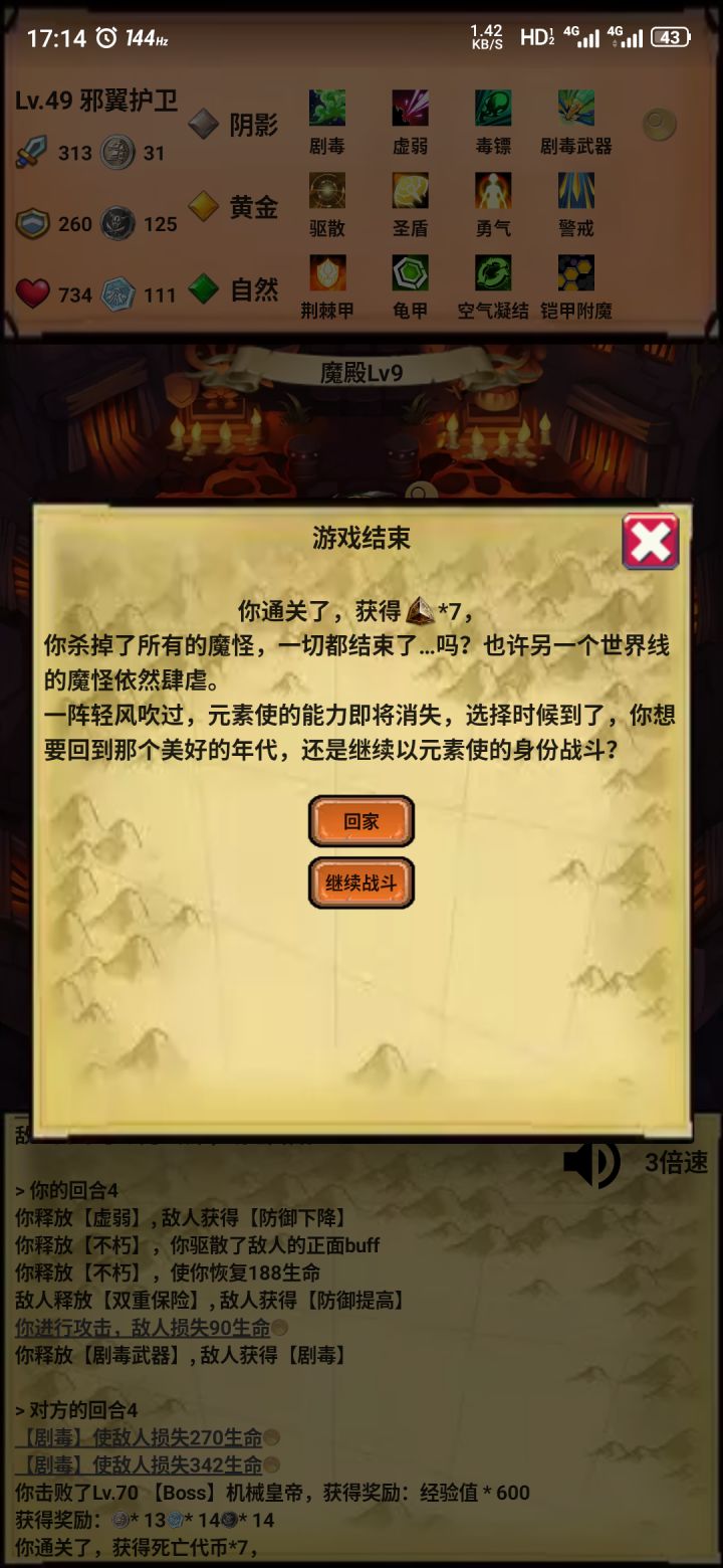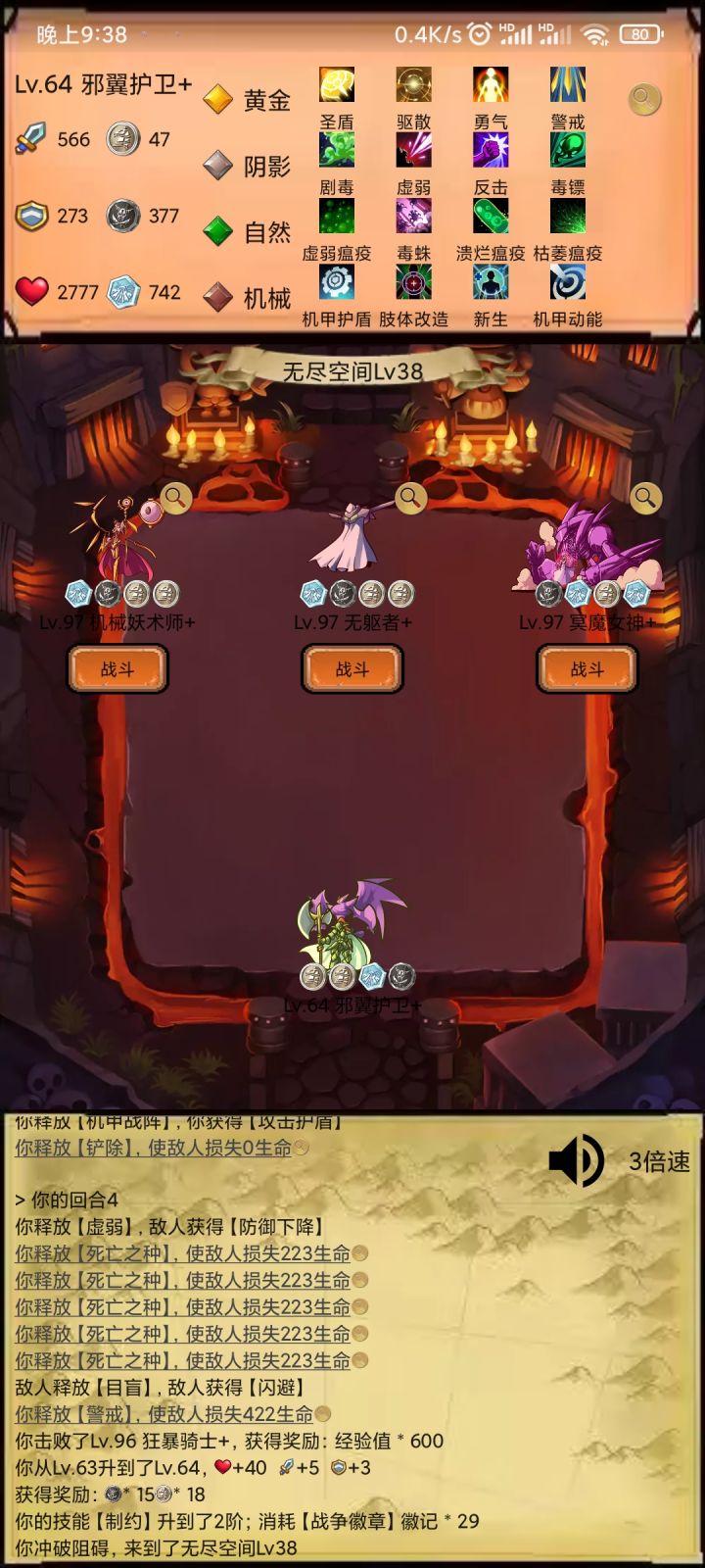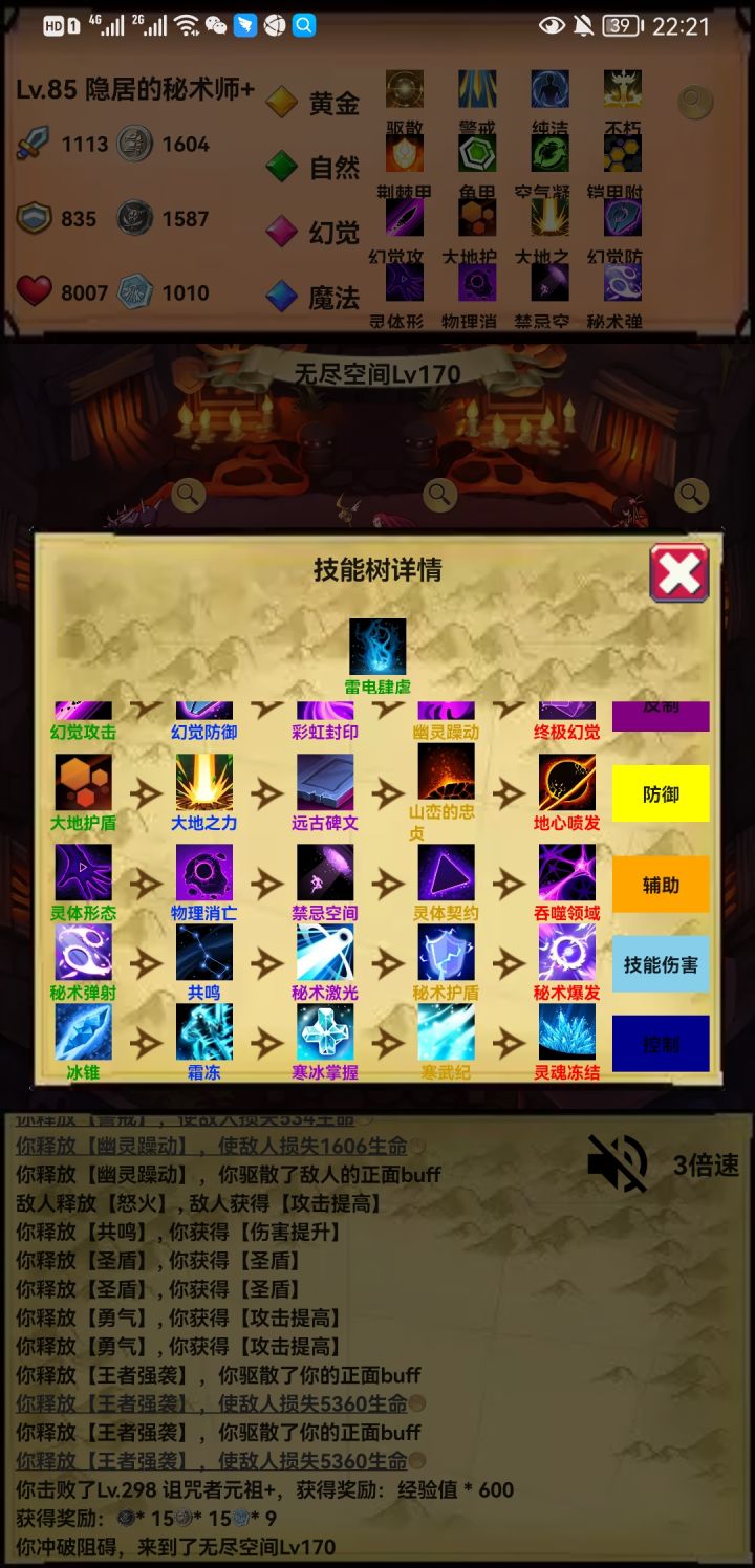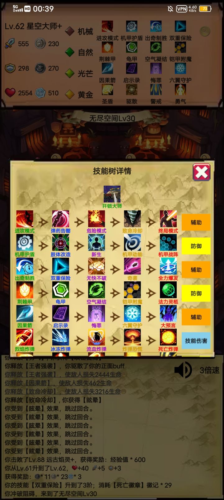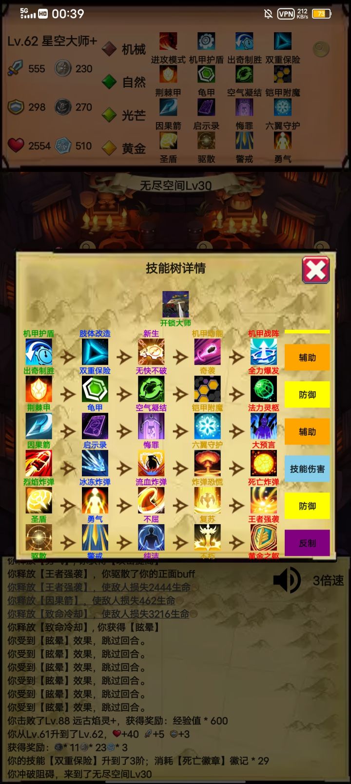 以后就叫《通关选防御》容错率极高的开局开局选黄金圣盾、驱散(核心免疫冰冻、暴走、禁疗+2回合临死无敌)自然选反甲(核心临死回血+降低敌人技能伤害)幻觉选大地护盾,幻觉攻击(核心免疫眩晕+提升反制)无尽补随意补(补点输出)魔法可以选秘术、冰冻。战争可以选蓄力。阴影可以选闪避、暴击。光芒可以选力量吸收、心灵震撼。机械可以补破风、烈焰炸弹。恶魔可以选黑暗。感觉无尽就后面随意搭配了