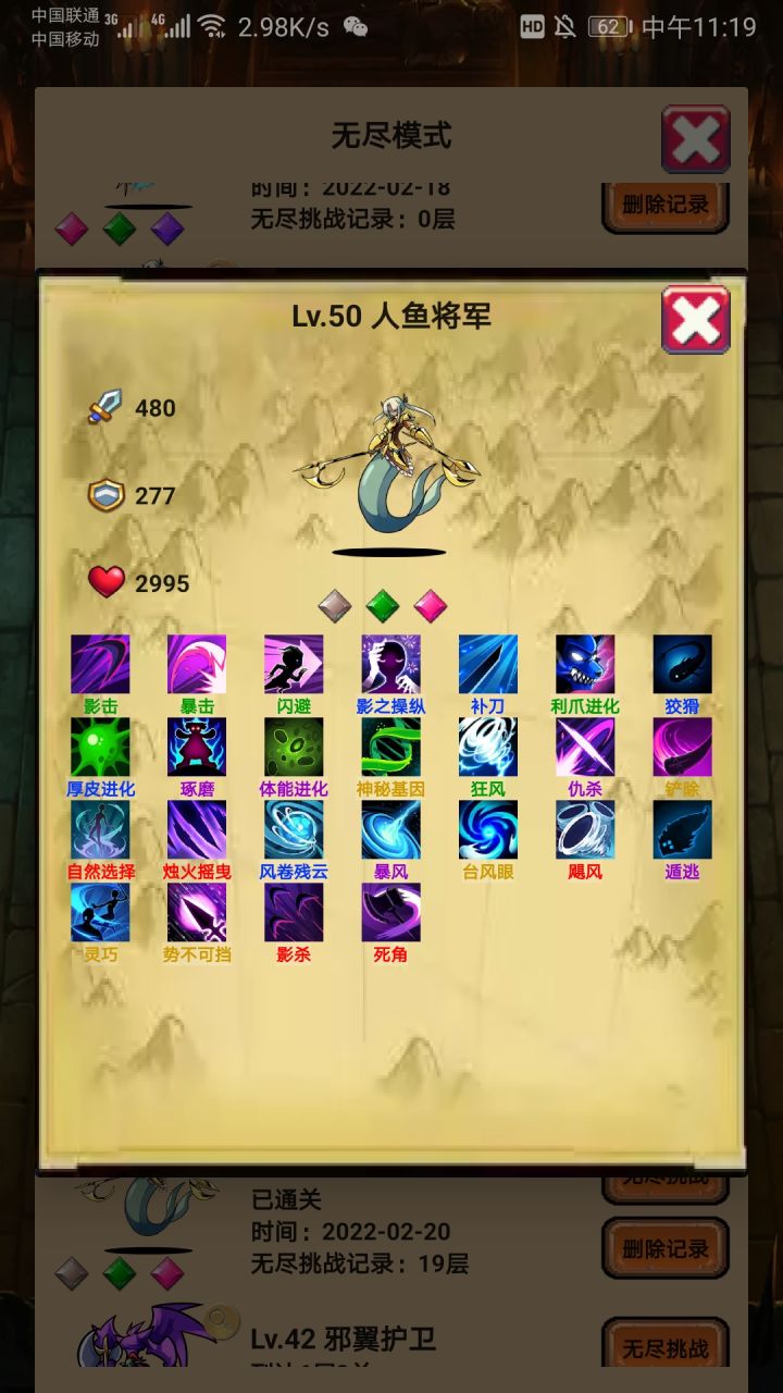 因为普通档不能进地狱难度 重新刷了一个地狱档 无尽通关版本1.6.7满代币 0魔方 0天赋 0神器( 可惜0代币打不过地狱第一个怪 不然就0代币了)版本答案 唯我遁逃流 (相比普通优化了一下 黑死病换成守林人 地狱难度黑死病基本没用)暴毙概率极低 就是打得久 大多数都要打满20回合(=ω=)