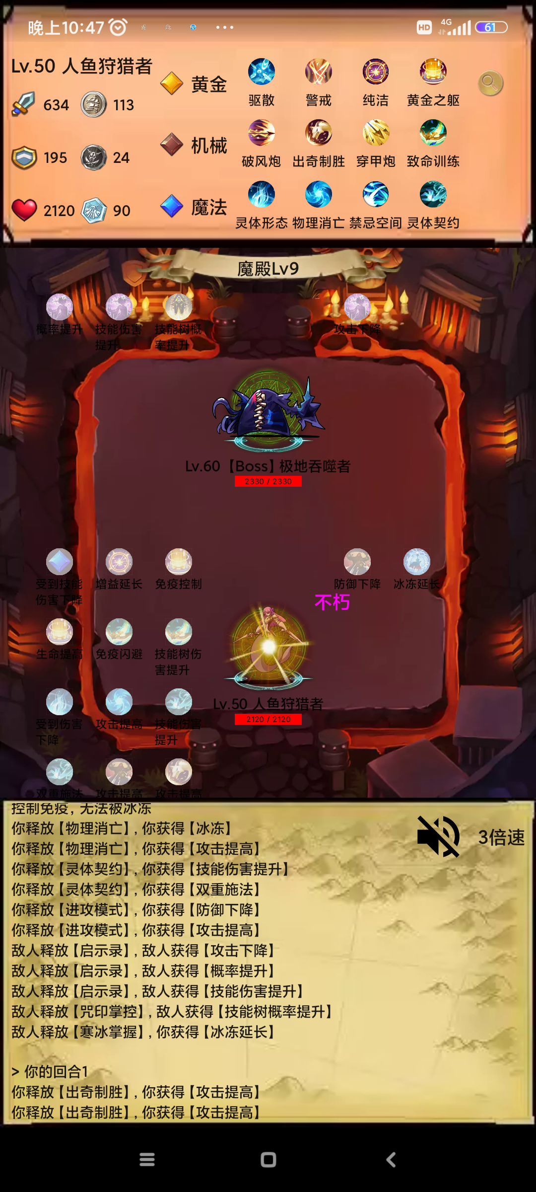 利用伪bug黄金系的警觉+机械系的进攻模式=回合开始100%攻击敌方200%伤害 魔法系灵体契约50%额外使用一次警觉 之后就是堆基伤