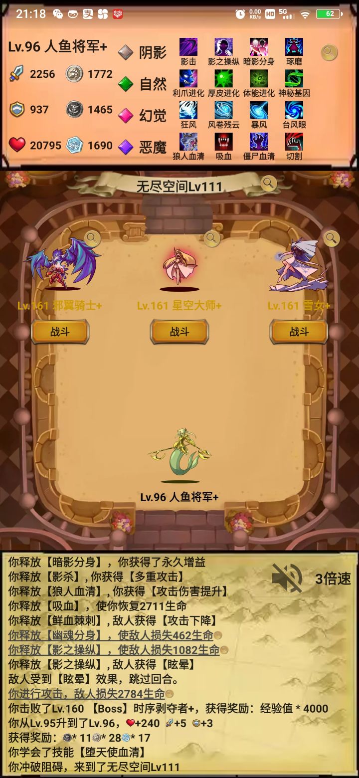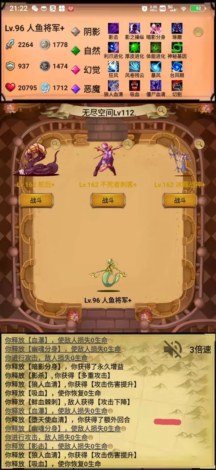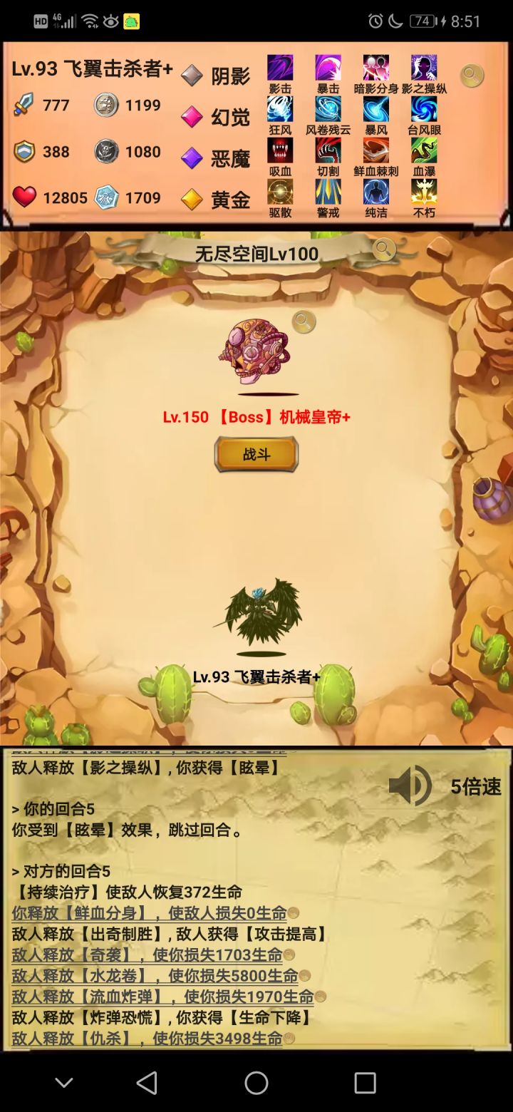 核心就是幻觉的多重和阴影的风暴分身,加上纯洁分身可以持续两回合,真实开局二十刀。再加上影击系和血清系的各种特效,影之操控对面没有免晕就都是无脑过。烦的是怕对面有白骨分身,满血无敌太恶心,就当攒攻击了。
