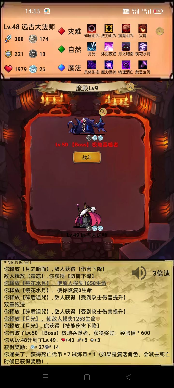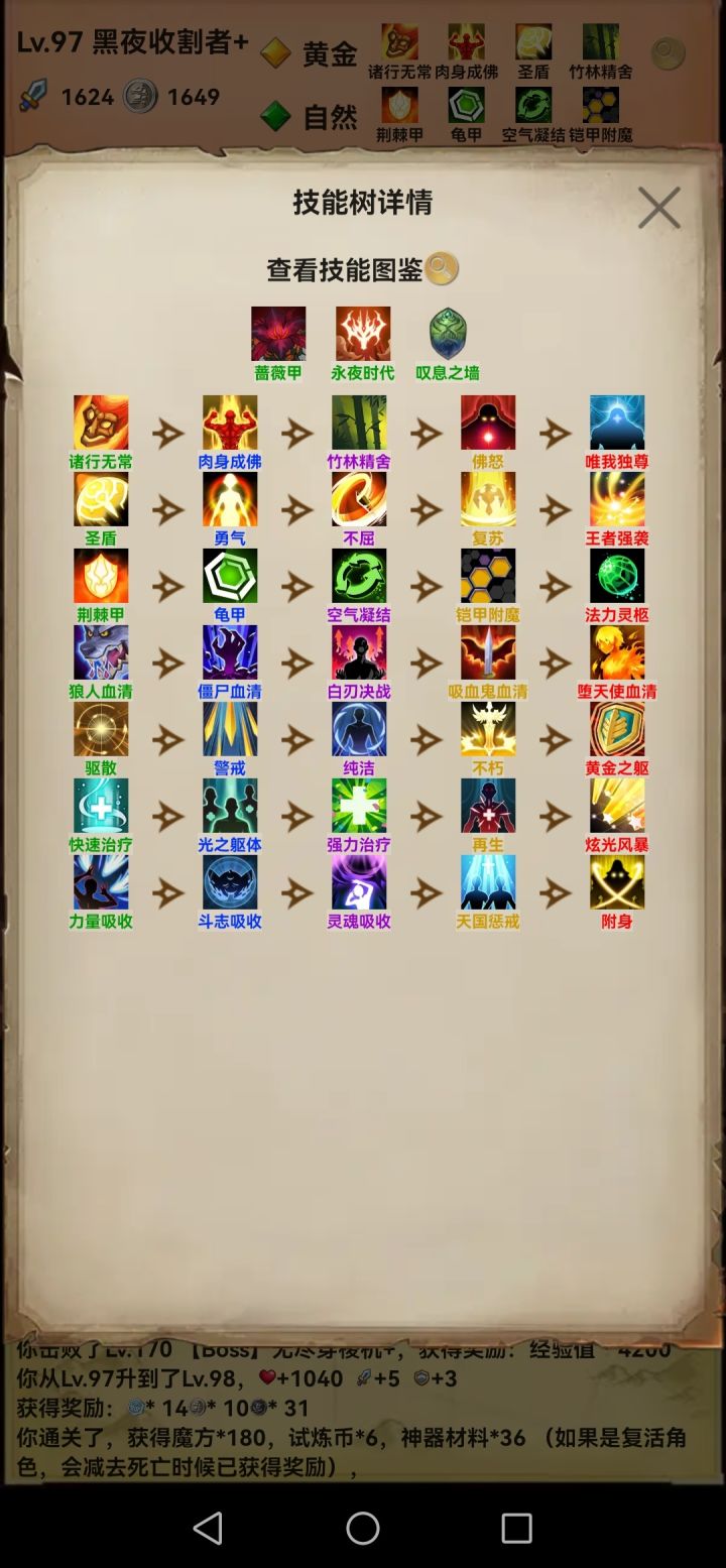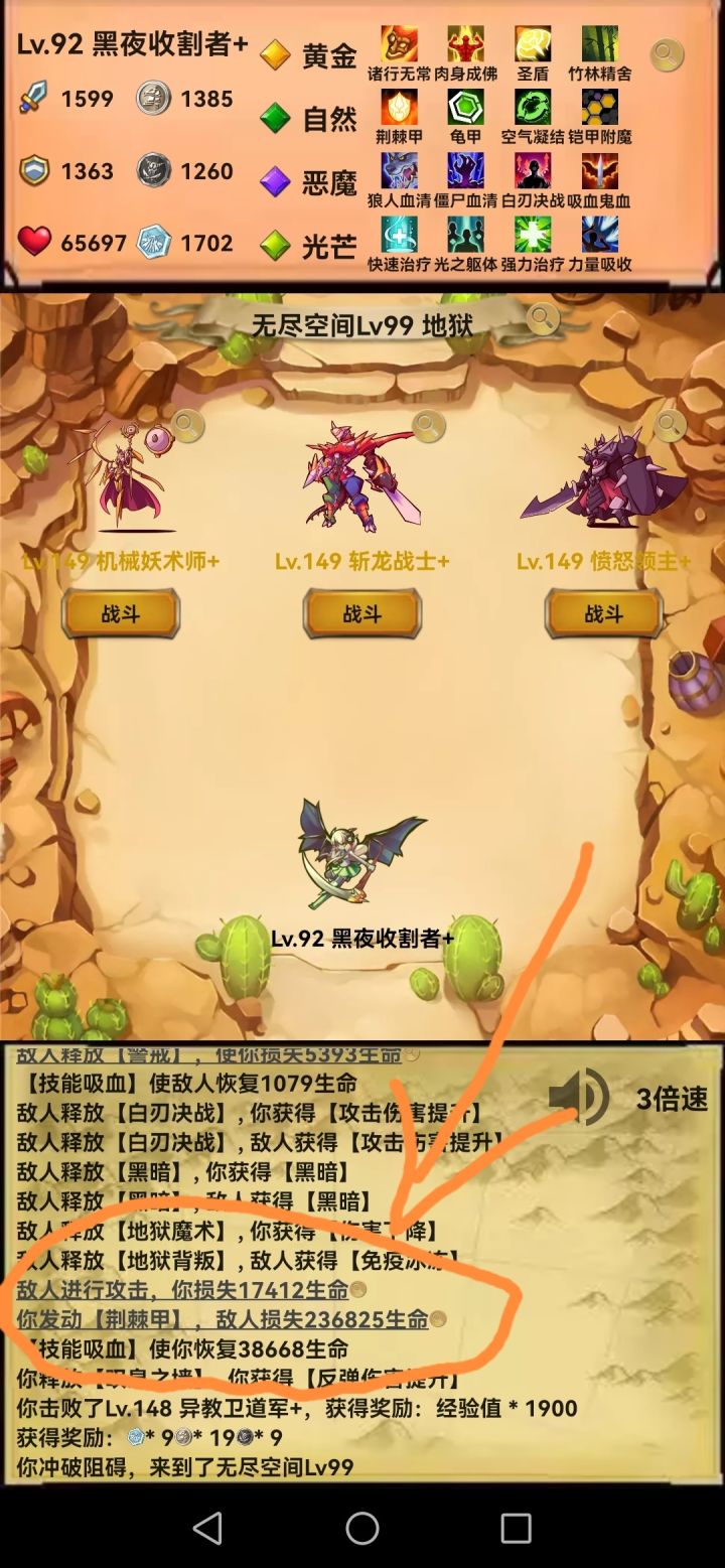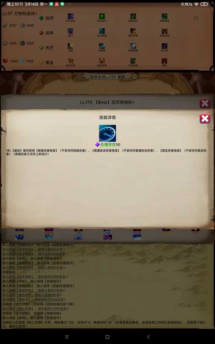 思路:在没有高等级天赋和神器下,由于全伤害免疫,且随机免疫控制状态,唯一能解决120层守关boss的手段,只有硬撑过20回合,所以只能围绕保命来build