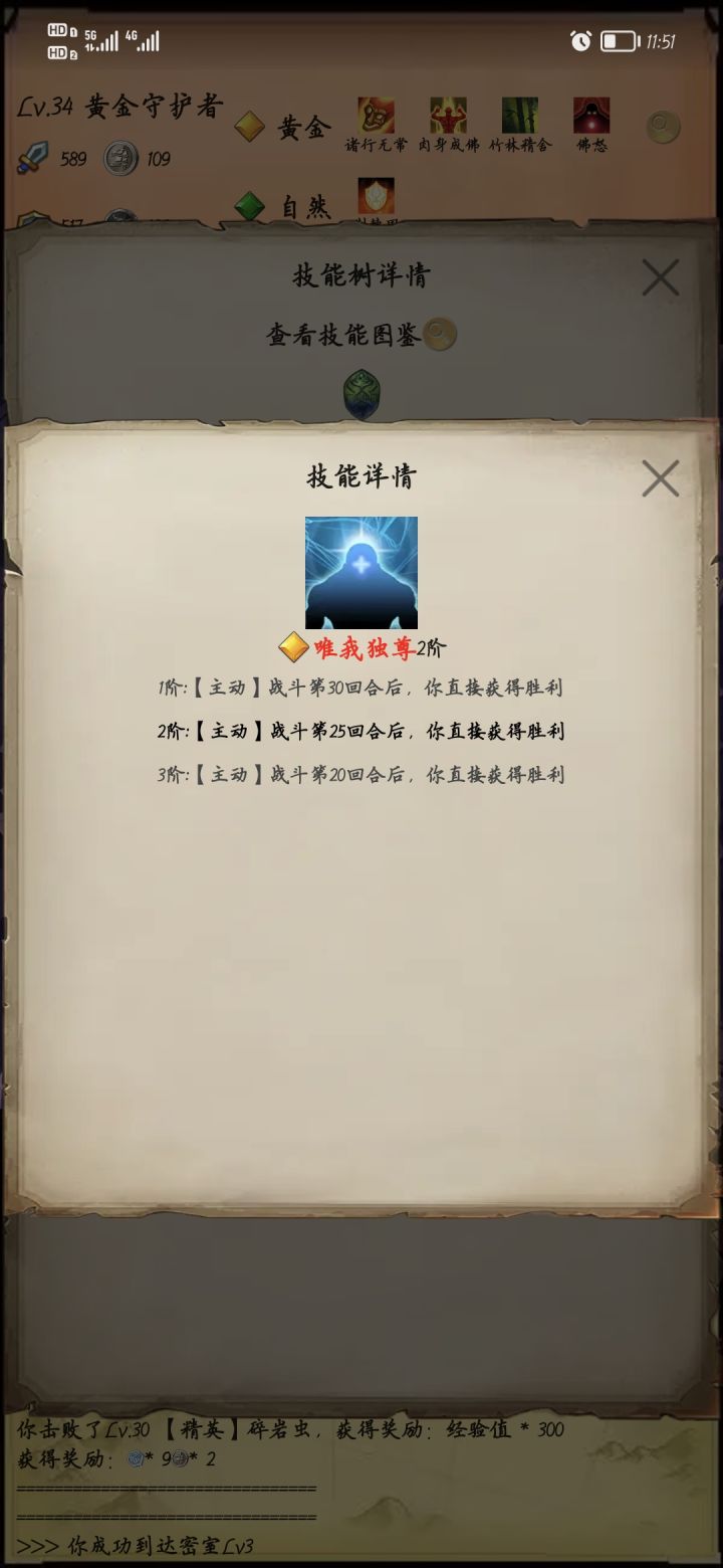 这和显示的不符啊,2阶唯我独尊说的是25回合直接赢,但是这打了27回合才触发什么鬼