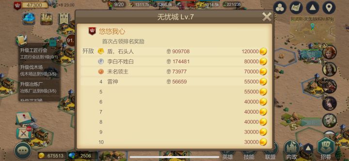 一次体力扫荡七级地平18次,累了获得经验一百万+。思路:利用女妖超高回复兵力的特点,反复拖平要点1,找块距离远的七级地把女妖这队给刷出来,然后远射。2,距离要远,女妖兵力越多,回复越高,平局越多,最后获得的经验就越多。3,平到女妖只有四千兵时就撤,以便后面再刷,不然打死了就队伍刷新了。花最少的体力获取尽量多的经验,可以试试。