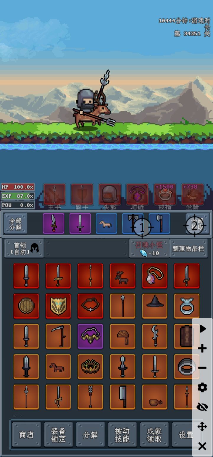 1.个pow加个手动释放2.加个商店买铁的(10金-100铁)3.招小怪间隔取消4.找boss(100~500钻之间的数值拥有跳关效果)5.新装备拳套6.被动技能突破上线提升到150级7.金币bug修复一下8.修复时间大法