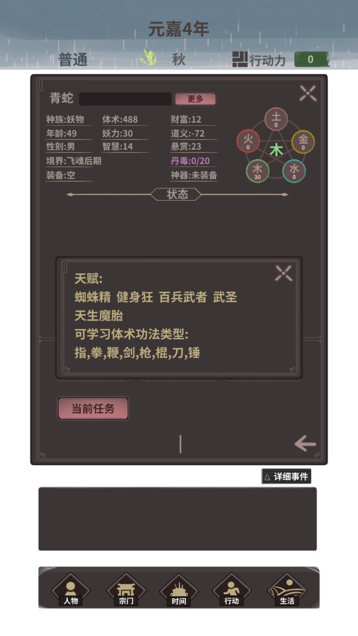 水灵石玩法,开局天赋要千机寻宝,水系灵力,童年炼丹术点好,山海司开森林去采药,一土一赤叶炼火药,卖钱,奴隶市场买鲛人,送朱砂鱼谈话开静谧之海,然后拍卖会整水灵石,随机事件刷蜘蛛丝去静谧之海,然后就可以常去,一次20水灵石,120灵力到手,但是bug原因要去一次静谧之海去一次森林来修复行动次数bug,平均下来运气好能5000灵力,天道随便打。注意鲛人要休战,以免被打死,别上街,四象卫很离谱,最好不要滚悬赏,越滚越多,容易暴毙还浪费时间。