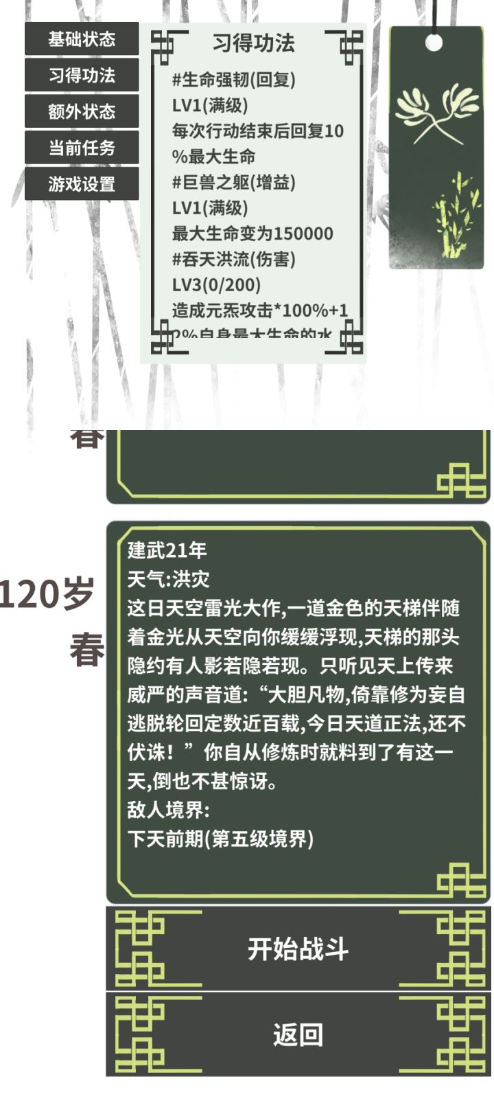 当然这一切的前提是你没有因为天生皇者出生没跑掉而被四象卫薄纱(你存档退出再进,可以把这个事件卡掉)