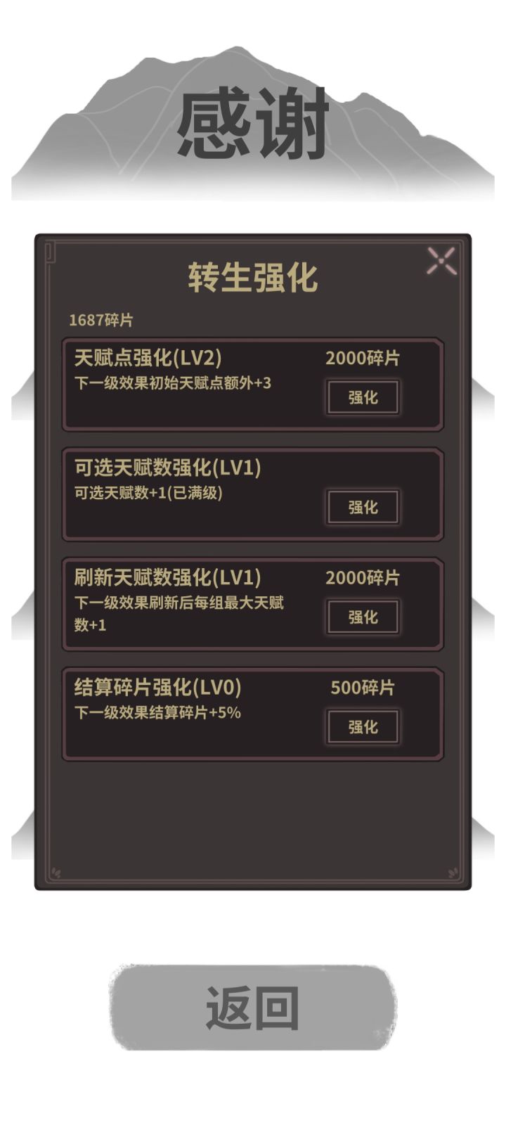 看两次广告进特殊转生选巨兽之躯+武圣+天生皇者+无所谓(想快一点就百兵武者,这是为了你必定能学大力金刚指,学个大力金刚指,后期打鲲最多三下前期也能和鲲拼血量强行刮死)