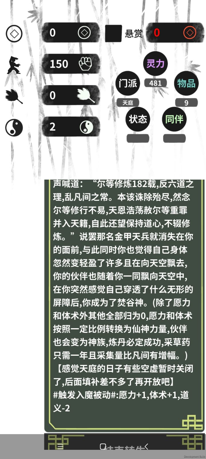 稍微解释一下:触发人身魔心组合,灵力体力每年+1。且侠义值事件皆为增加。侠义值高了悬赏会掉。掉悬赏就可以安心偷学秘籍了。