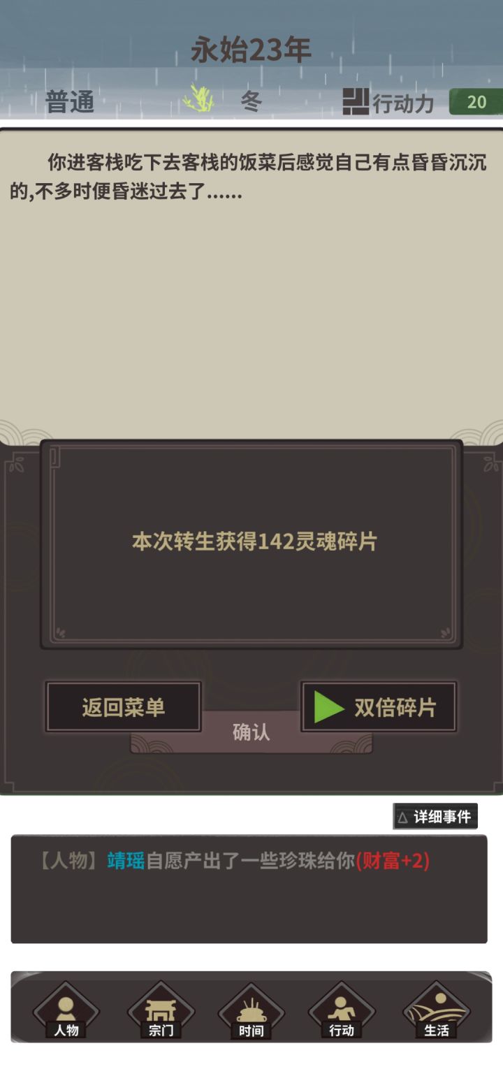 经历好不容易找到目标,送礼点的手都麻了,然后一不小心把大道灵脉给送了,回档,又要重新开始送,然后又把大道灵脉送了,我强心中的砸手机的愿望再次回档,然后一不小心点到攻击,尽管点了后悔,好感度还是那么愉快地变成了-20,气得我直接退游戏,不玩了建议能不能送礼可以选数量,然后一次赠送,一个物品10行动力,一次一次点太累了,送一个物品至少点四次(前提是没有被拒绝),分别是交互,赠送物品,然后选你要赠