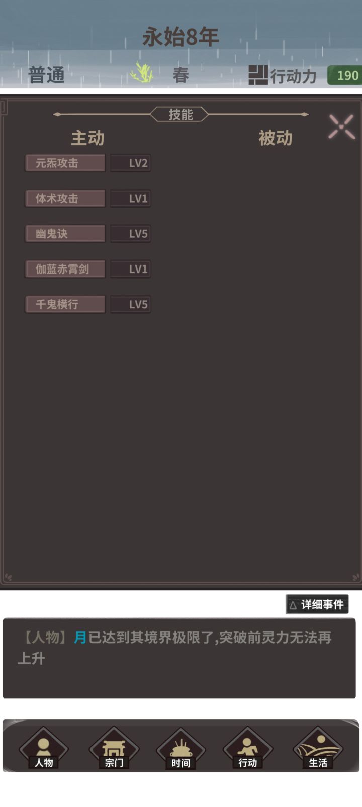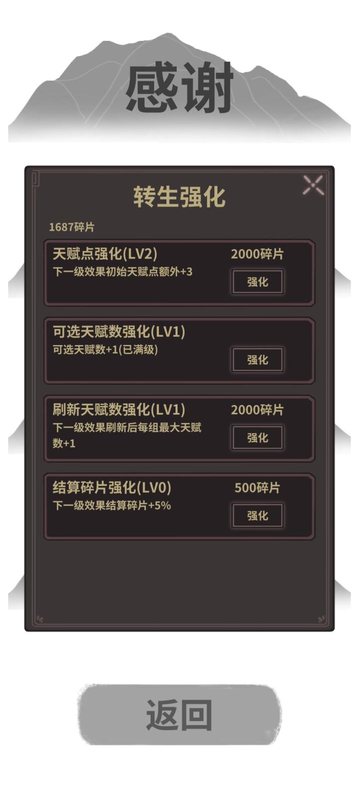 第一次玩剑,我领过智力夺取术了,但是退出重进之后,无法判断自己是否还有智力夺取术(在静谧打了一堆鬼,愣是没提一点智慧)还有玩剑打鲲多少战力合适,是先打鲲在打朱雀好,还是打完四象再打鲲?另外上一把我打完阿修罗王,并且走过剧情,为什么不是那个转生升级天赋的界面而是直接灵魂折算?