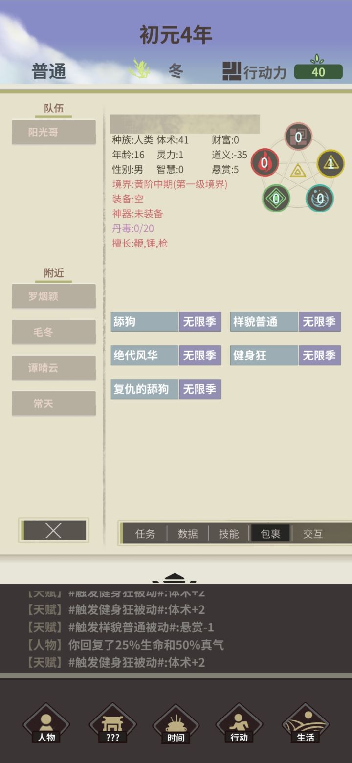 前期跟个废柴谁也打不过,境界高也打不过 ,最主要是除了一个御蛊术就没伤害技能了,等到了中期其实还好,但体力跟灵力的分化太严重了 带健身狂 灵力上万,体力才上千,那些比较吃体力的技能就没有什么伤害,吃灵力的技能商店只基础的技能,也就玩毒流派可以好点,我就试下但出现了一个问题,触发落红了但我连着刷了十多次,20多次就硬是不出心脏 ,就是拿不到秽瞳,导致后面剧情也无法触发,真就是打不动东海那条鲲没有秽瞳