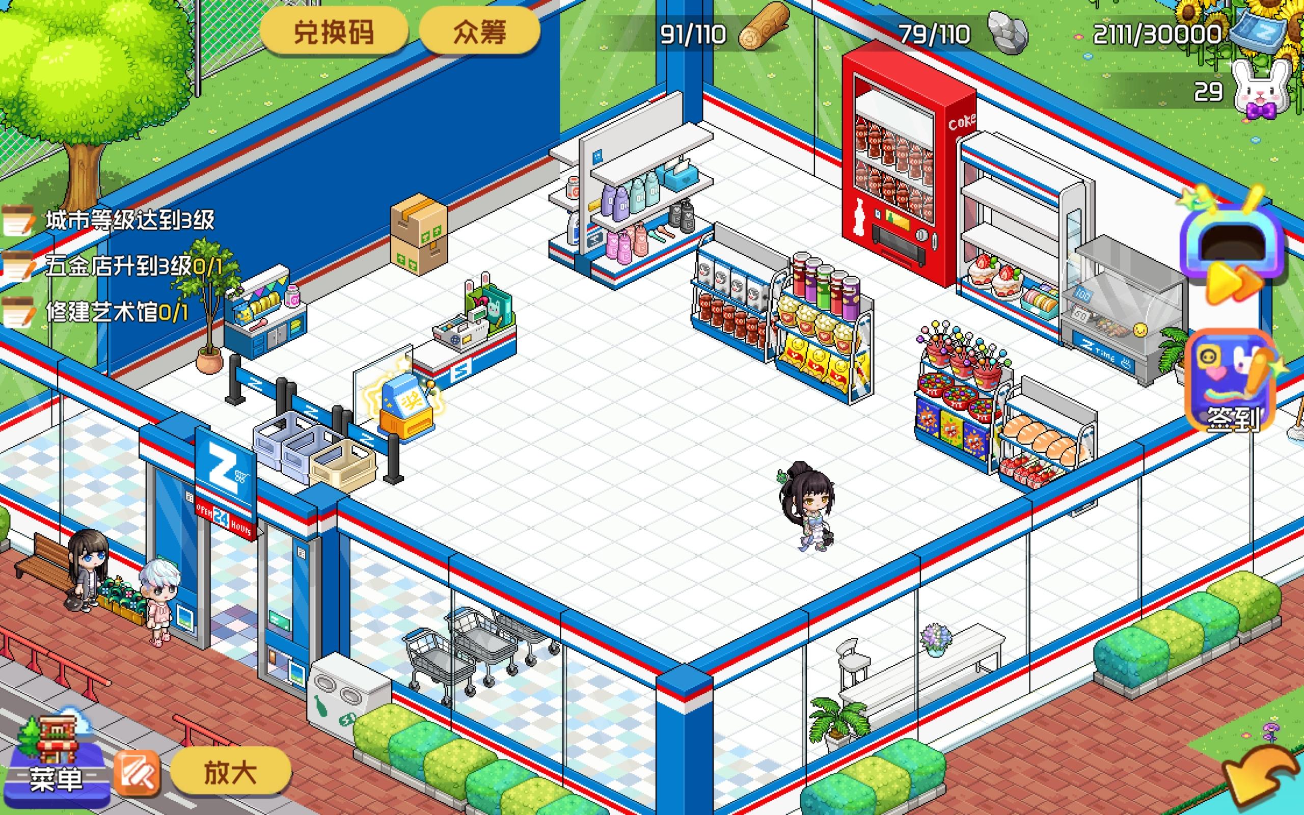 又是便利店……这回是货架问题——傻乎乎店员没有去补货阿orz。客人都来了,货架一半都是空的,这样很影响我赚钱的速度啊!(bushi)希望这个机制也能改进下——比如每次收银结束后能自动把所有货架的货全补满比心
