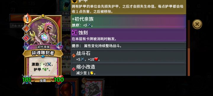 此刻年轻的神还不知道自己即将面对什么……双击,践踏,迅捷,每次攻击提升5攻击,甚至还有一张反胃……#怪物火车 #发现好游戏 #游戏日常