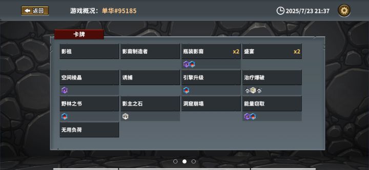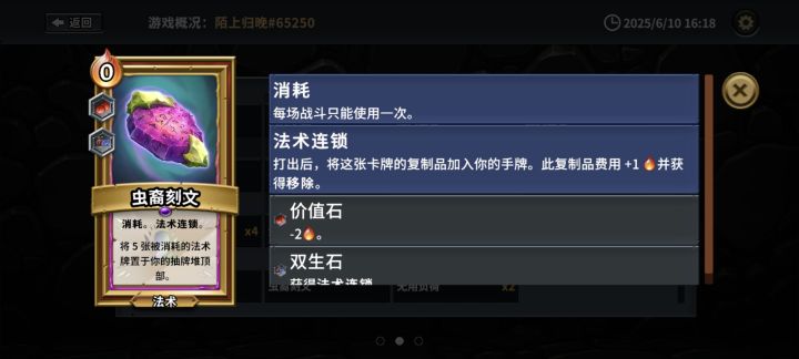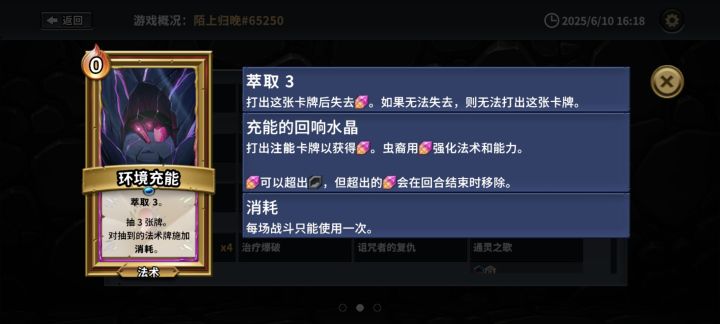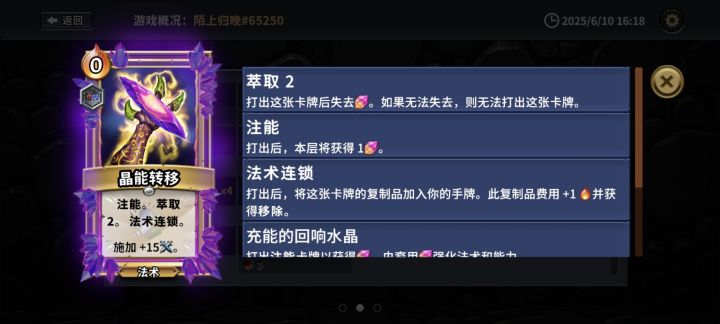 自从玩了这就流派,其他的流派都感觉无比卡手,说一下套路玩法 核心卡牌: 地狱火(带减费+返回),开局一定要刷地狱火,加装返回后基本就稳了 能量虹吸(带双重+减费 或者 连锁+返回),如果到第4局手机还没有魔法增强卡就重开吧 海胆尖刺(带去除消耗+减费),全体增加魔法伤害,极其霸道 其他卡牌无所谓,有断角可以留一两张应急(带增强+减费),另外地穴建造器和寒冰龙卷也很强力(带增强+减费),boss的位