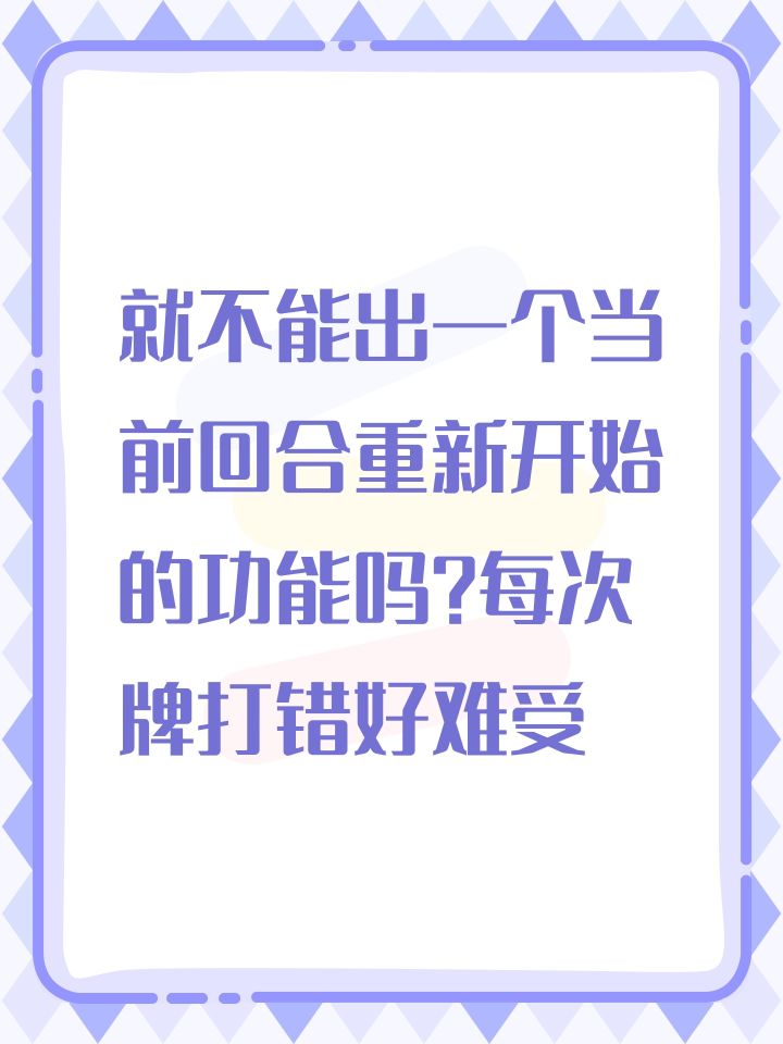 就不能出一个当前回合重新开始的功能吗?每次牌打错好难受