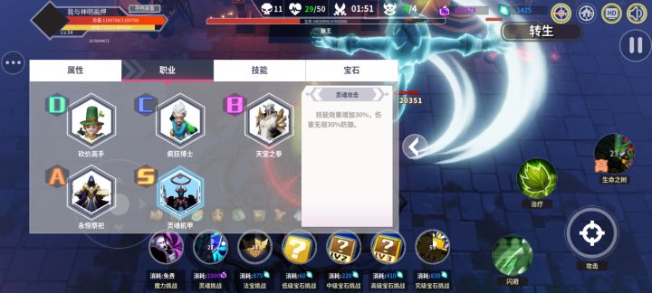 只拿一个D职业和树人和生命成长一直转生,开局刷树人和生命成长,塔只升第三项,最后一波开始前刷好职业,换被动升塔无脑莽。图里我都没换被动