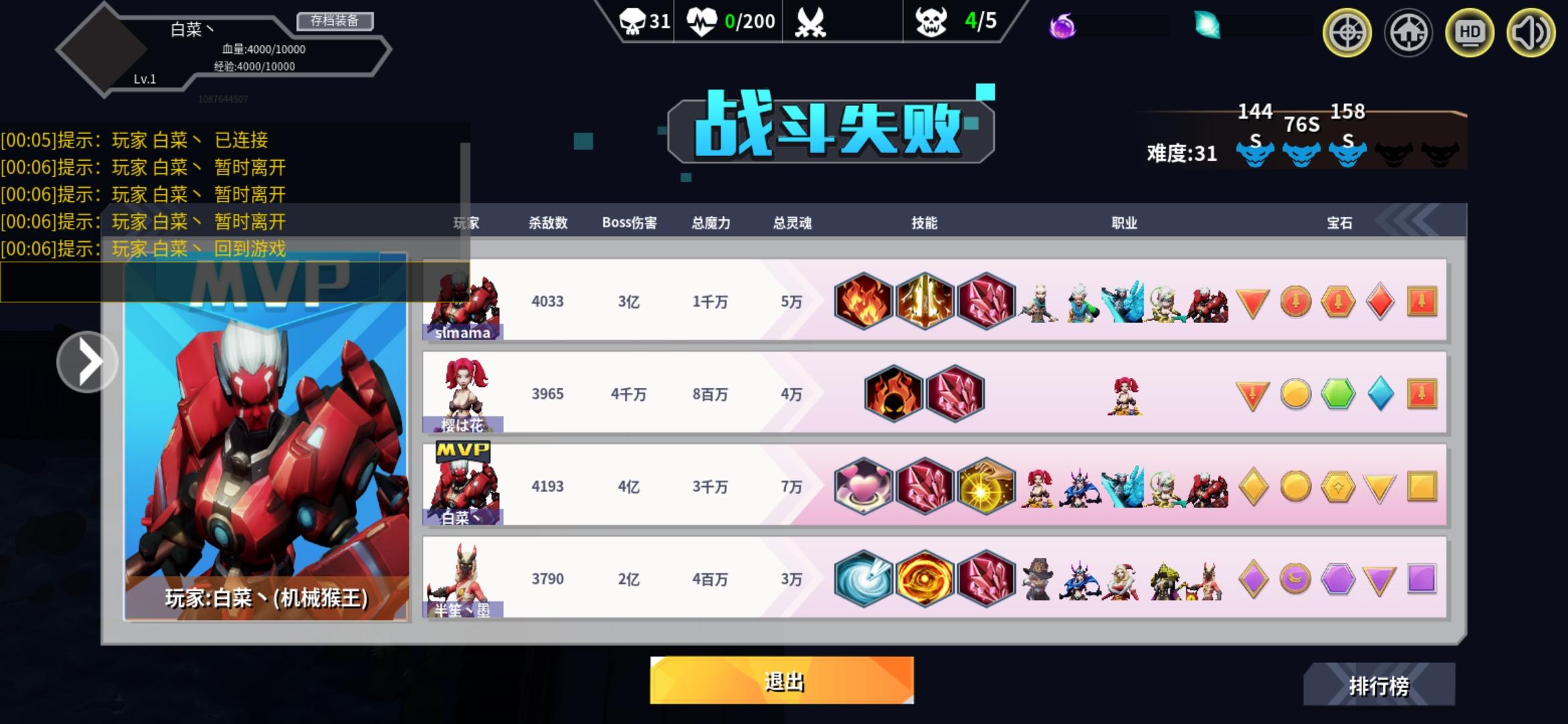 别一进去就开始退啊,萌新怎么玩,大家都帮你去升级了,你自己退了,坐等收装备啊。你说你们都是7.80的大佬们,我打了有好装备也行。开个20层帮你打?真的是搞心态