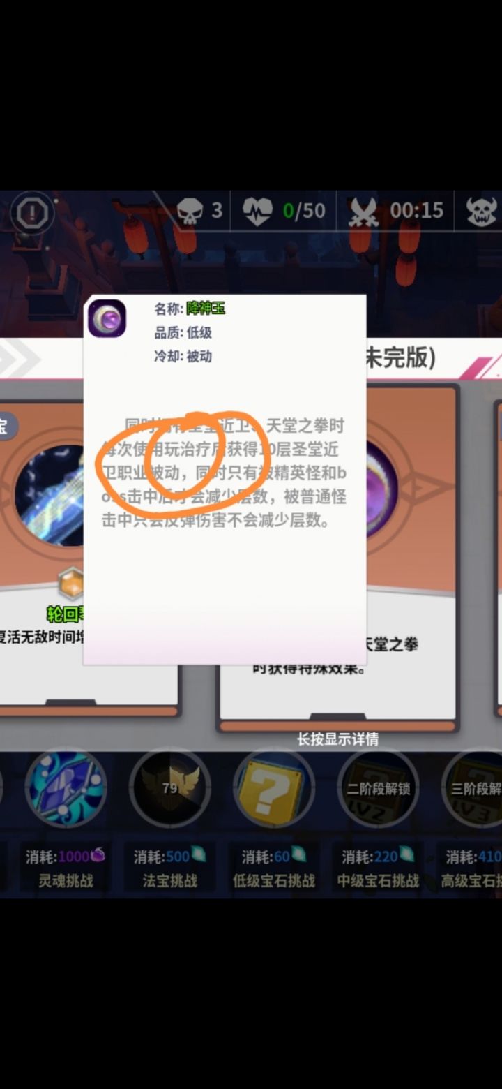 给作者几点建议。1.游戏数值设置非常不合理,不是被怪秒,就是秒怪。没锁的时候被怪摸一下就死。后期属性严重溢出,摸一下boss就死。2.难度的变化只是怪物数值的变化,从1升到110的过程枯燥且乏味。很容易流失玩家,建议每10个难度解锁不同的内容彩蛋。3.鸡肋无用法宝太多太多,污染了法宝池。可以理解作者为了游戏多样性趣味性加入不同角色联动的法宝,但是这个是需要大量测试的,强度是第一需求,没有强度添加再多也是无用。希望这个游戏越来越完善吧,开个充值入口,能给作者带来收益