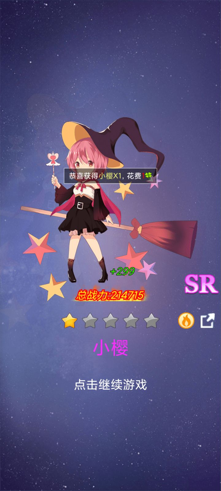 我获得了A品质英雄小樱,快来恭喜我吧!