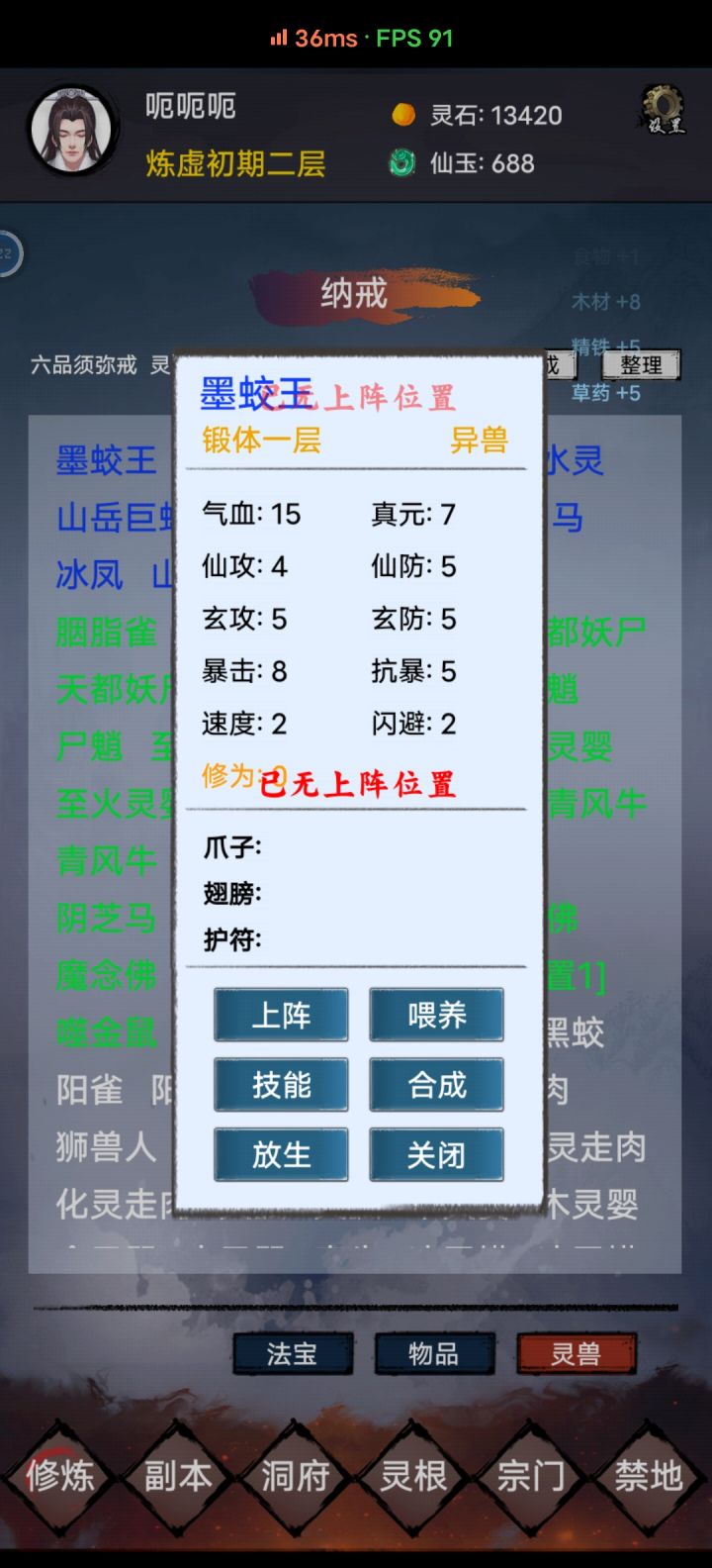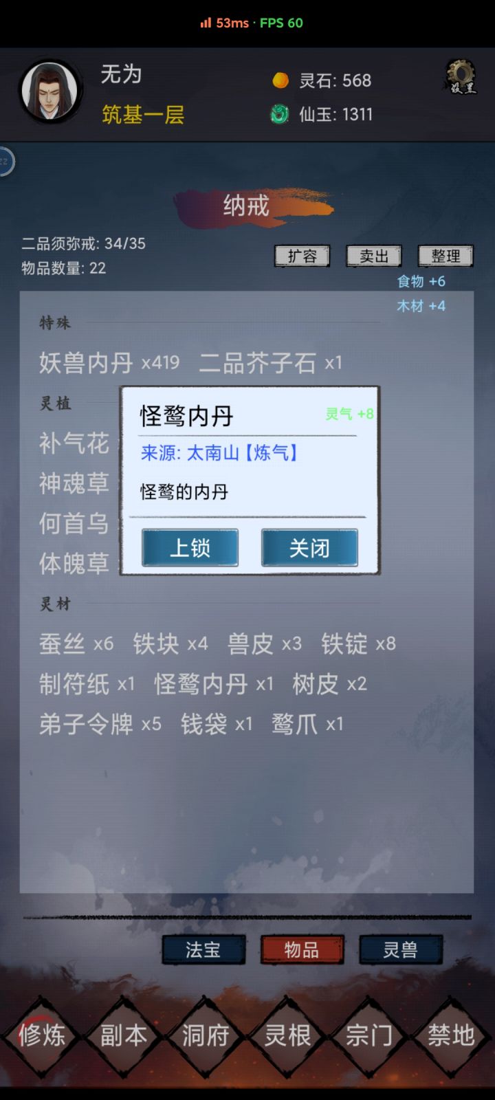 还有各种材料什么的太乱太杂了,建议精简一下,资源卡上限很蛋疼,根本体现不出挂机游戏的收益,下个本神识就没了。