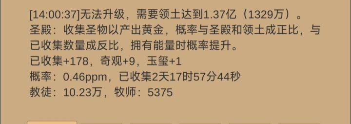 之前发了个帖子,如图圣物还没征召完,但概率已经比初始低了。提出了圣物分封是否有bug的疑问。并且给出了两个猜测:猜测一:是bug,会占用8个圣物的收集概率;猜测二:是直接获得最终版圣物削弱概率。再仔细看说明,第二条——直接完成圣物算法迭代,这句话的意思,起初没在意,随后才品出来,这句就是说,获得最终版圣物削弱概率(原本这个概率是逐渐削弱的)。说明猜测二是正确的,这不是bug。根据以上信