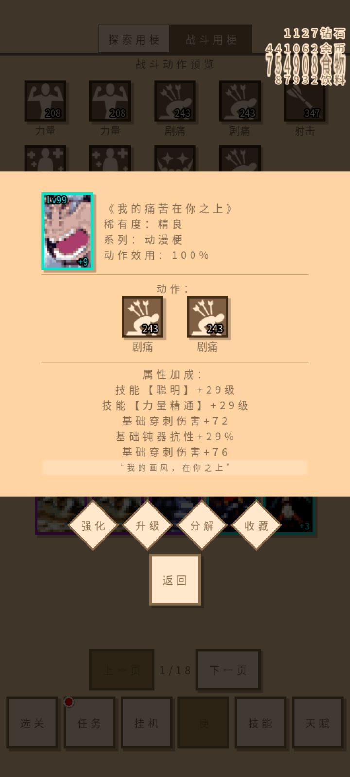 前期就靠着基础伤害加成+持续伤害一天轻松打到100,现在不算恶意一轮都有8k的剧痛,几秒一个怪