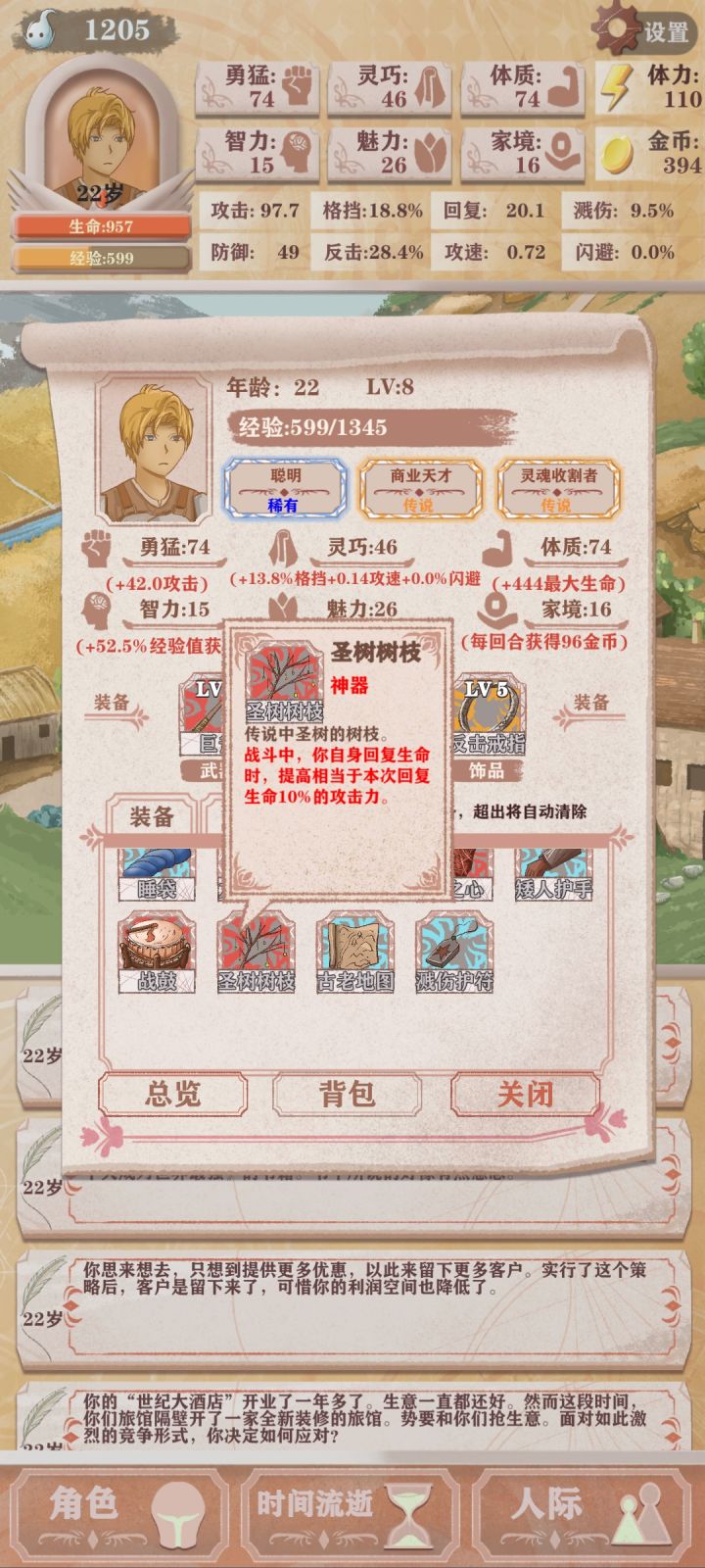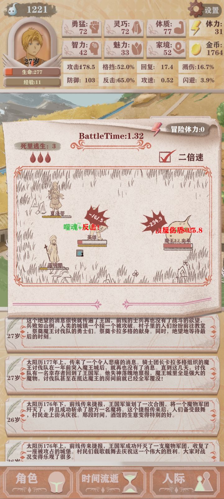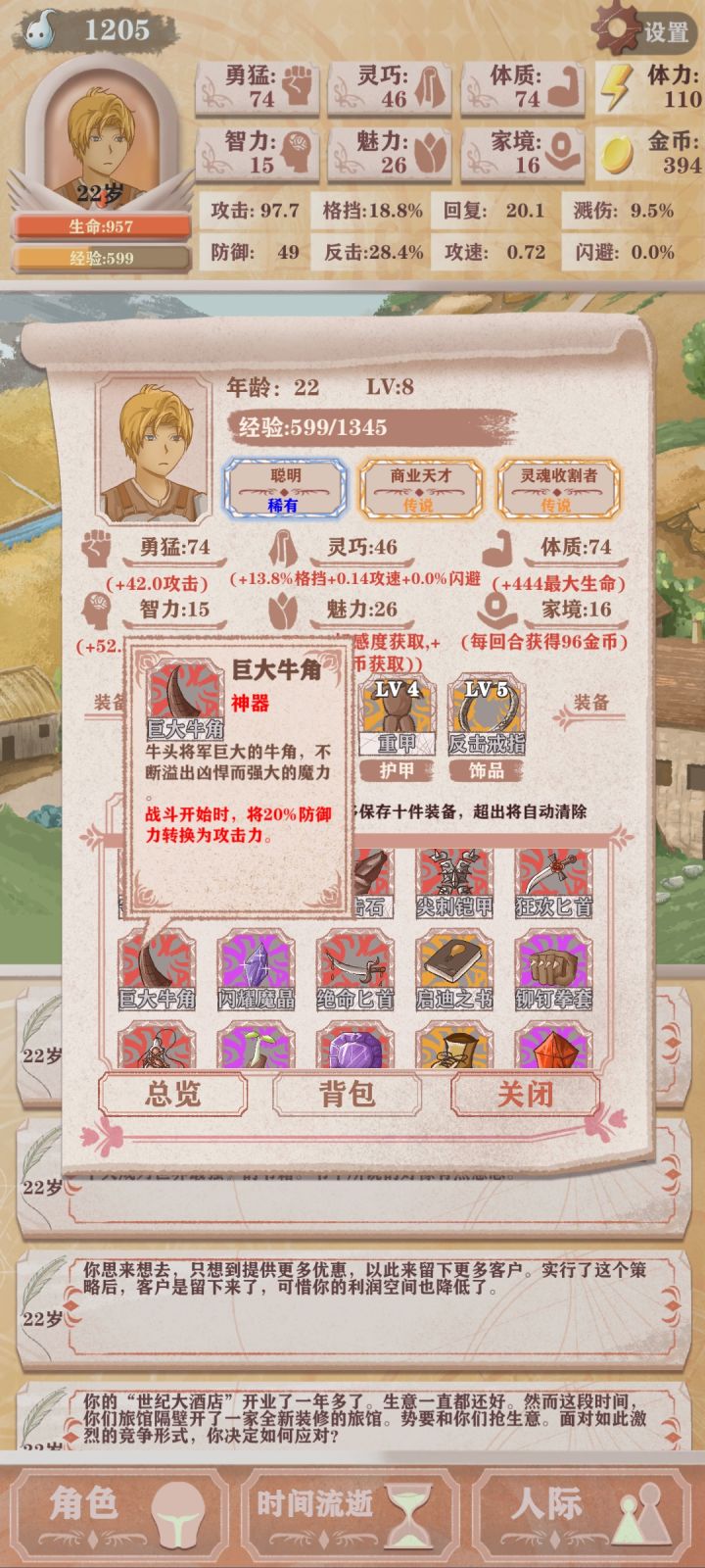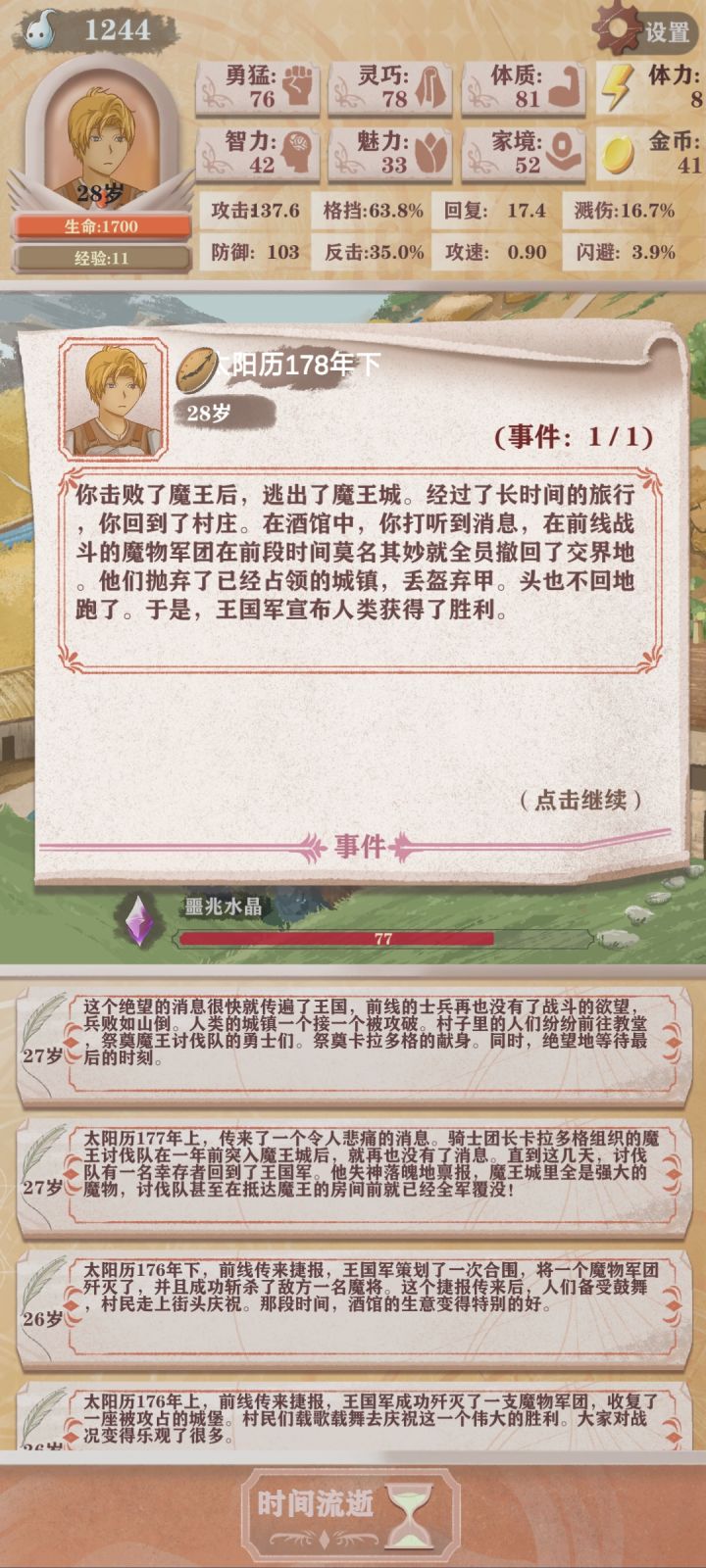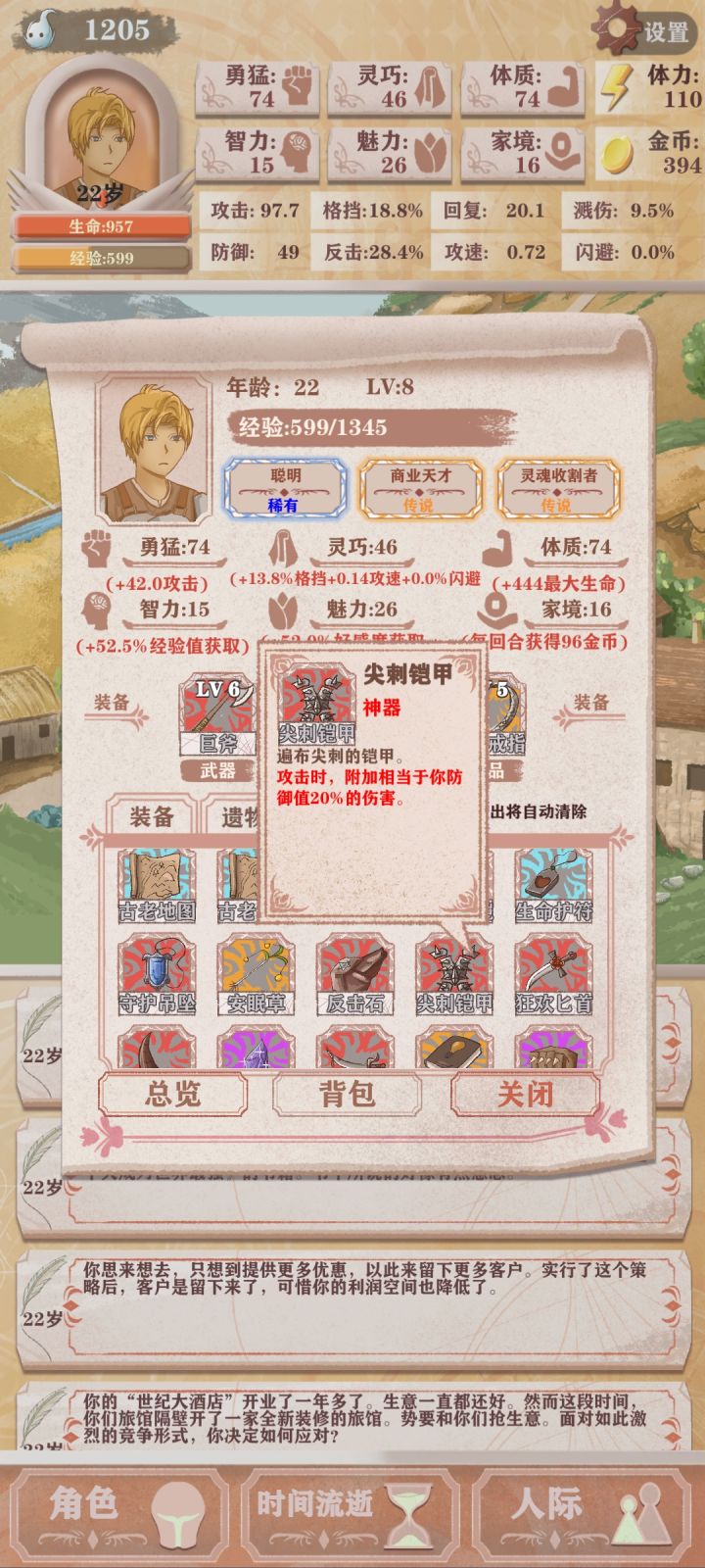 第四次轮回,只能勉强看到boss太难了(点的天赋是体力➕10,成长期的勇猛增长,还有一个资本家加钱)发现还是需要战斗天赋才行我要是有个格斗家估计就能过了
