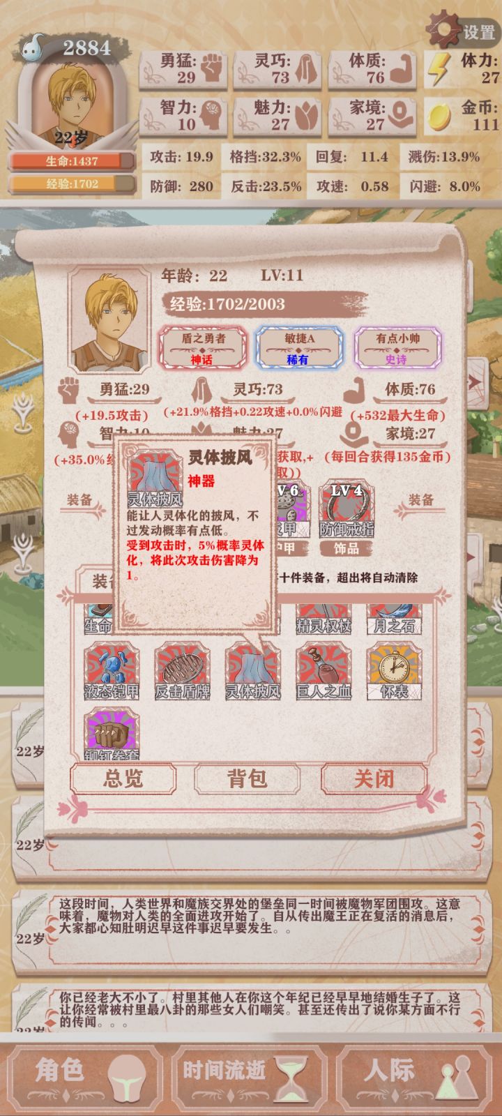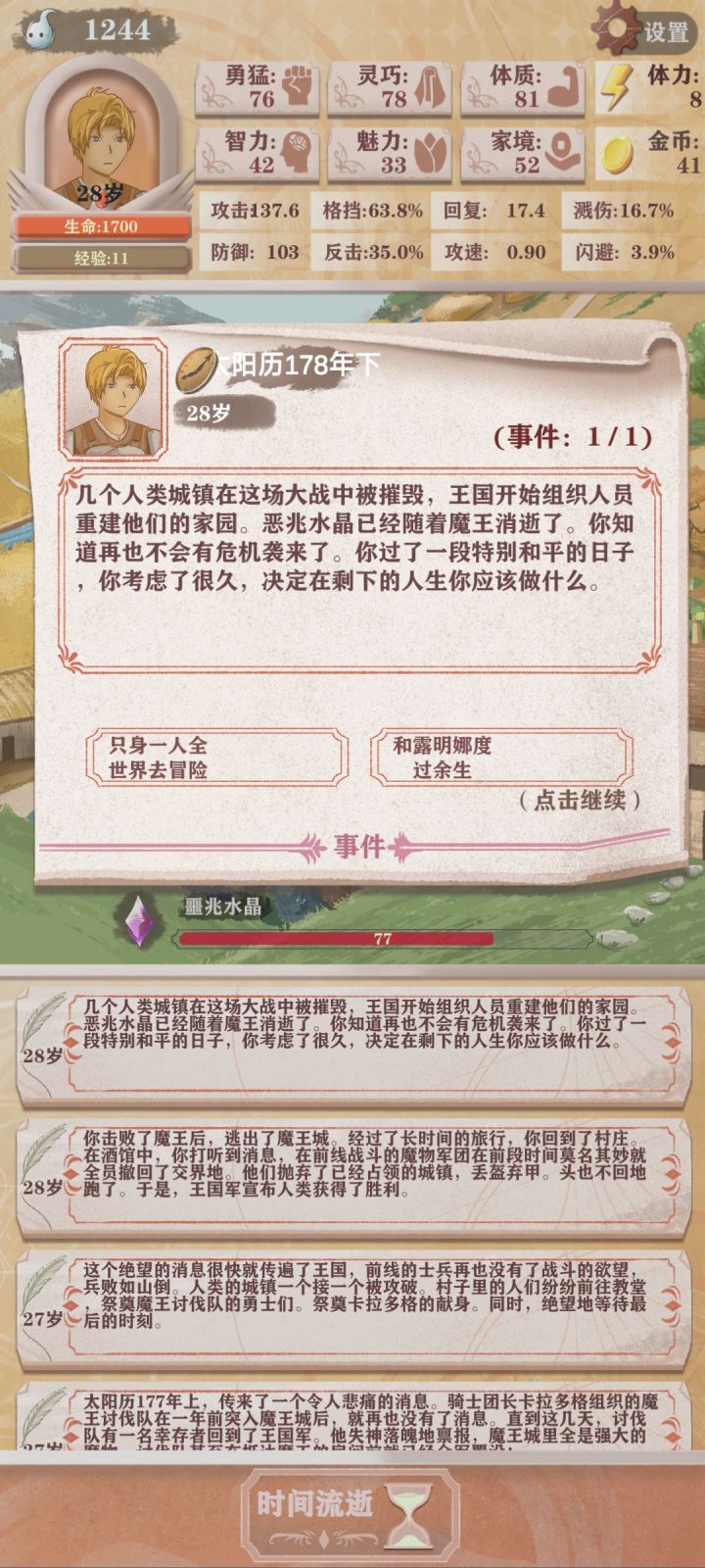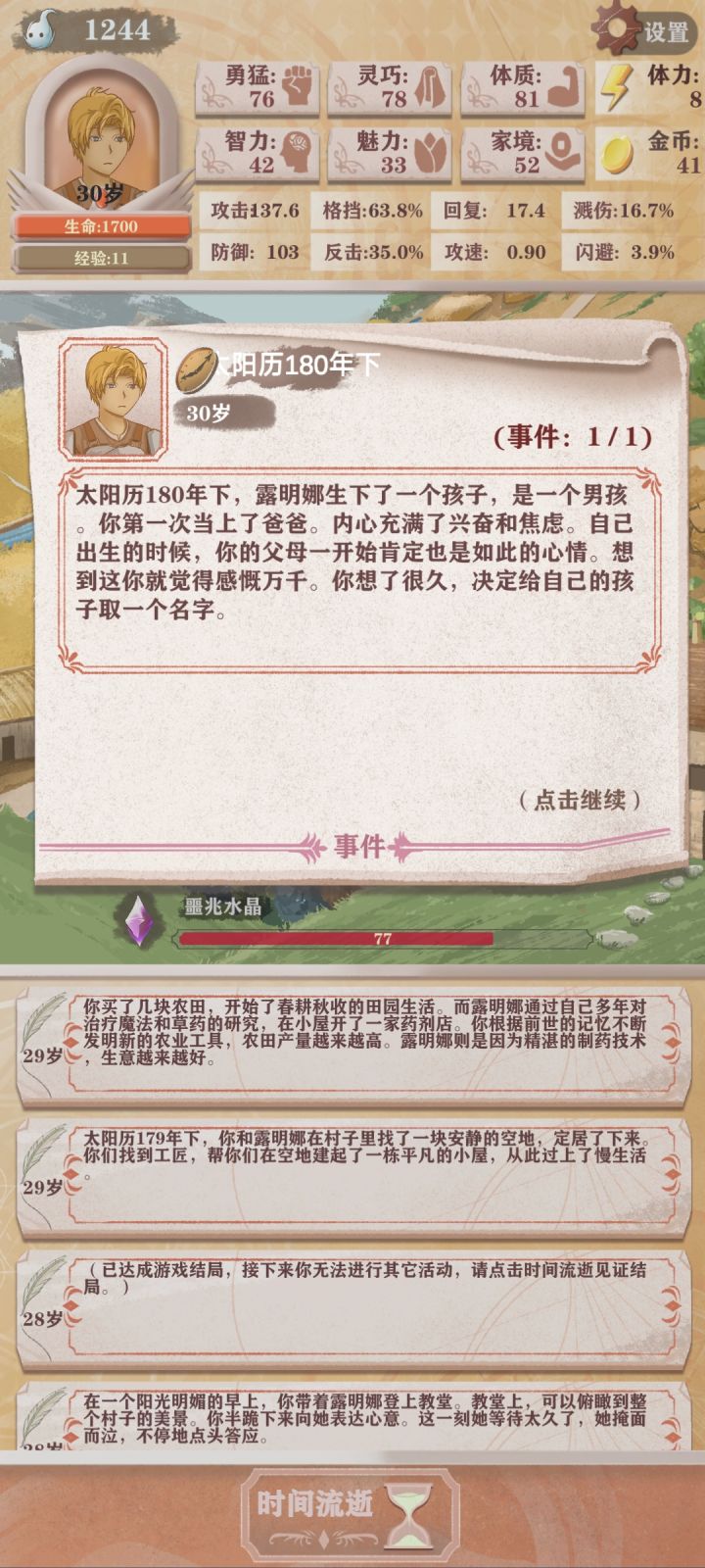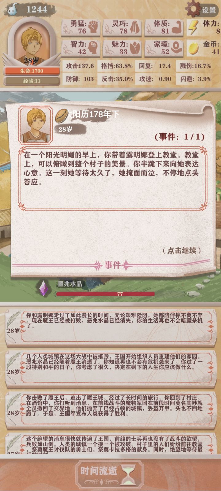 第四次轮回,只能勉强看到boss太难了(点的天赋是体力➕10,成长期的勇猛增长,还有一个资本家加钱)发现还是需要战斗天赋才行我要是有个格斗家估计就能过了