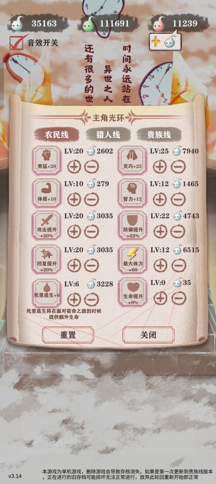 这个流派可以无脑过所有boss,包括双龙,思路就是靠高体质鲜血契约+悬浮甲和铁片给宠物高血量高防御,能让宠物抗到下一轮召唤物出来,宠物一直阵亡刷愤怒防御召唤等等,等魔王摸到我已经刷了45防御和近200召唤 天赋:操偶+技神必备第三个推荐健身达人因为需要全程攀岩练体健身达人收益非常高 核心遗物:鲜血契约、悬浮铠甲、铁片 技能:四个召唤建议拉满级,其他的除了狙击和献祭全点 装备:祭祀弓、祭祀头或者护目镜、祭祀服或者骨甲、防御戒指或者生命戒指 流程: 1岁只睡觉刷智力 3-9岁山泉5体力吃果子、集市感叹号35体力跳舞,其他体力全部刷智力8岁记得去集市激活老婆 (之后在房间研究智力要25体力了但是前面全部练智力也差不多70左右智力一局够用了。) 10岁后面每回合两次攀岩、酒馆喝酒吃饭、四次狩猎、老婆好感度,还有体力留20进图然后看分配大本营15体打工或者35体搬东西打工或者山泉40体换2魅力 残酷5以上没有三个宠物暴击伤害没有200以上别去打boss很容易翻车,前期进图摸遗物刷等级开箱子就可以,我残7进图被第一个怪两只猪单杀🤮等成型后所有怪都可以刷,掉血只有鲜血契约扣的根本突破不了宠物,宠物面板2000血200防御,要不是我动物的召唤宠物技能一直拿不到要15秒才能召唤,魔王连我宠物都摸不到