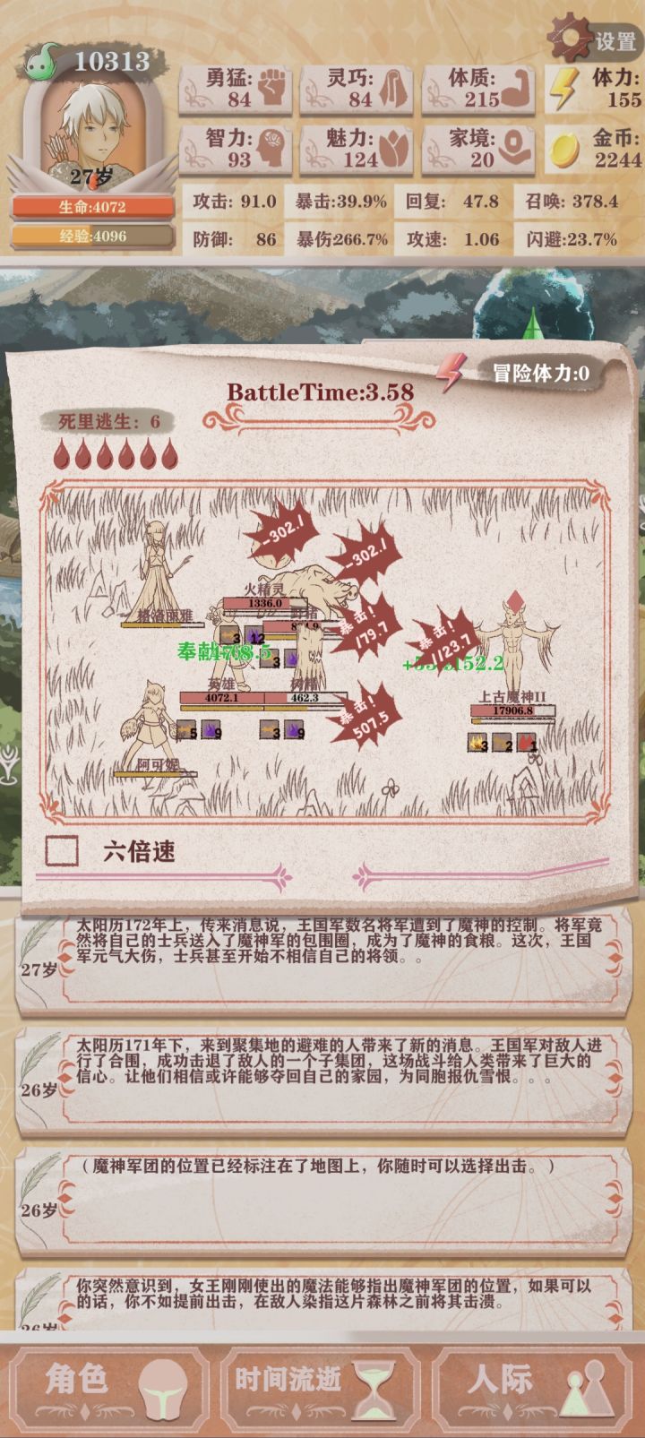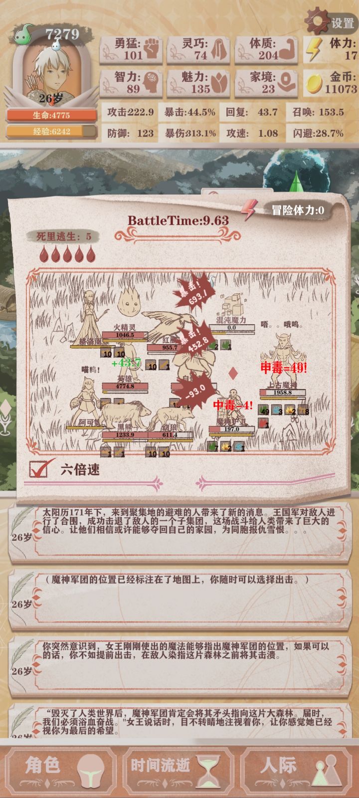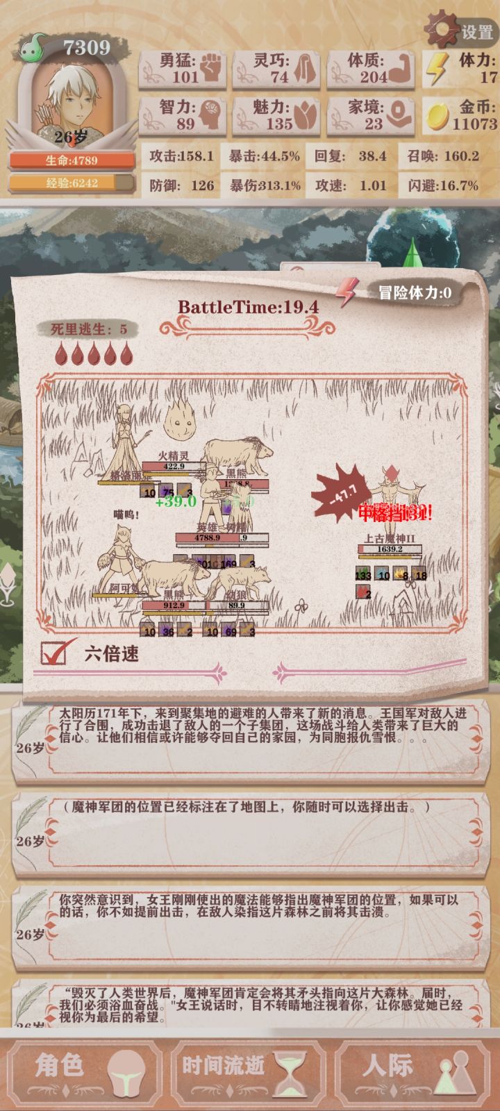 多重影分身报告残3打完了,超级轻松尤其开完精灵门,裁缝店买完魅力值就是切菜了打魔王一阶想截个图,结果没有倍速情况下秒了,没截上……