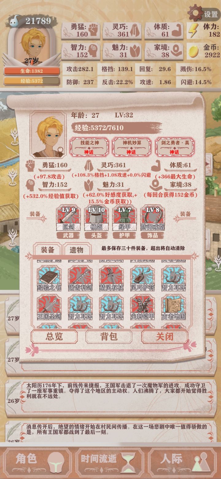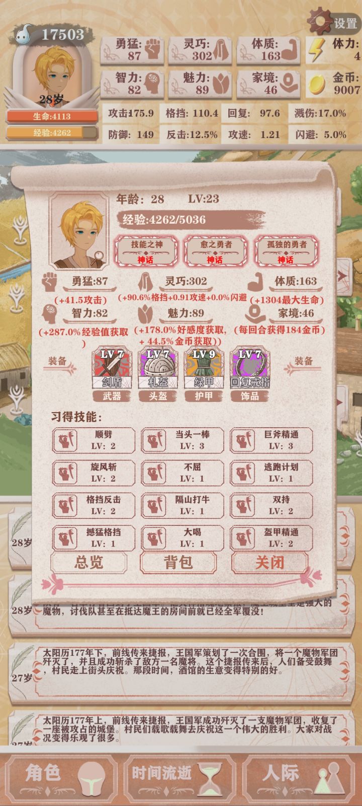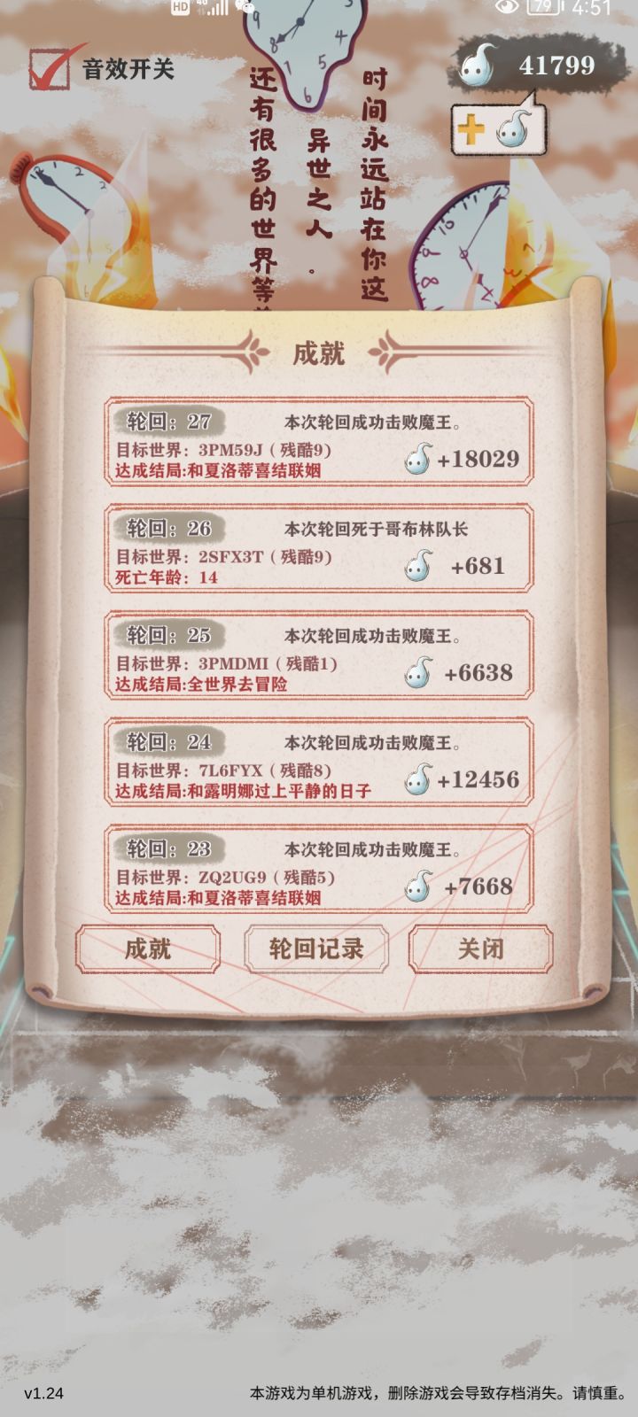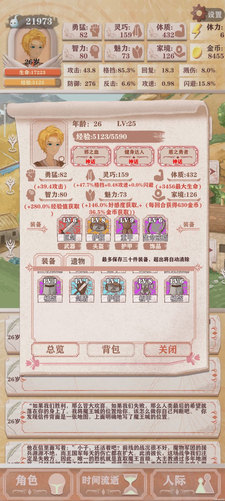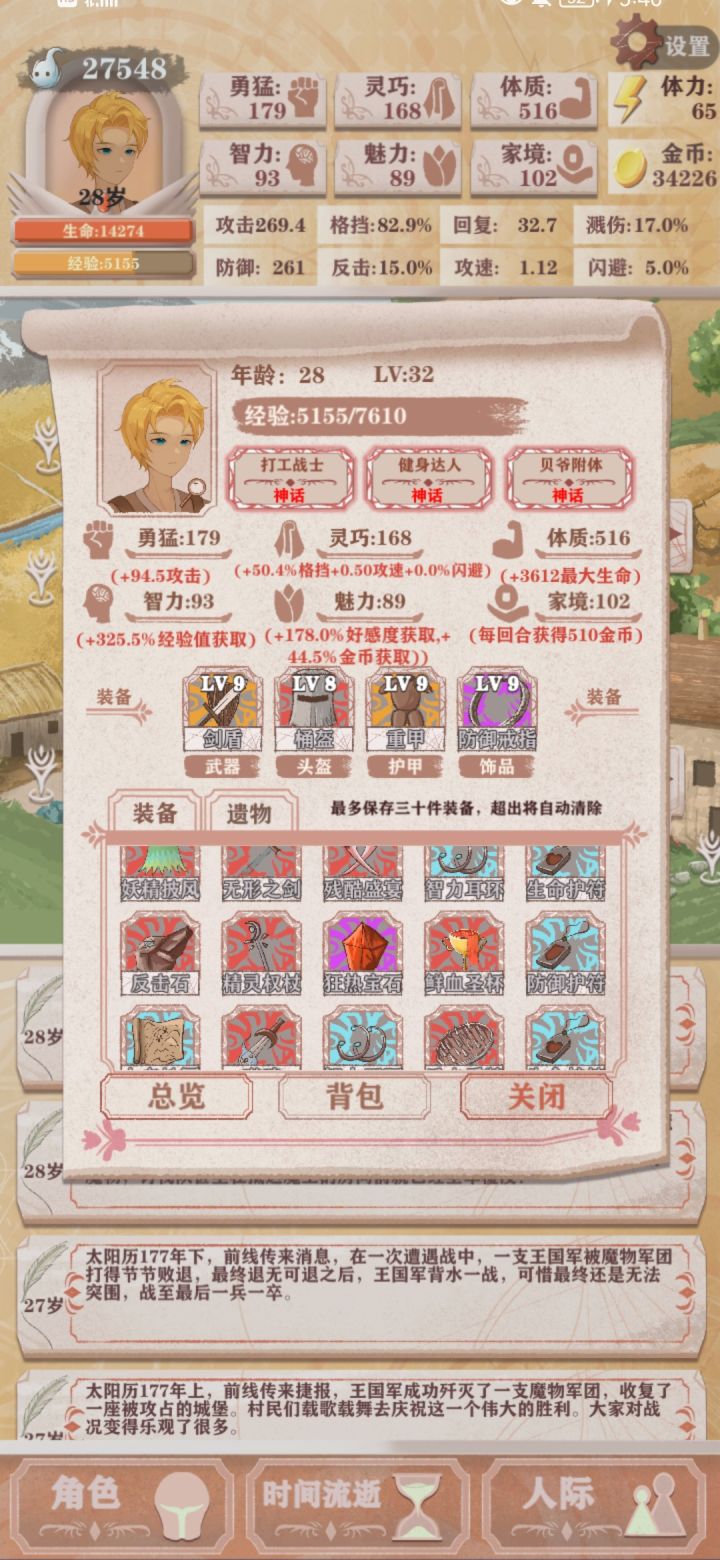 残八成功收集全部红色遗物(ps:除了boss二选一少的那几个),因为到最后两次旅行商人都是空手来的,所以应该是收集全了。打工健身yyds,为了刷魂还带了贝爷,残八目前就是我刷魂的极限了(光环等级不够),残九想打剑圣就得打工健身配剑勇,技能,智慧这些了,带贝爷只能一人之下了。