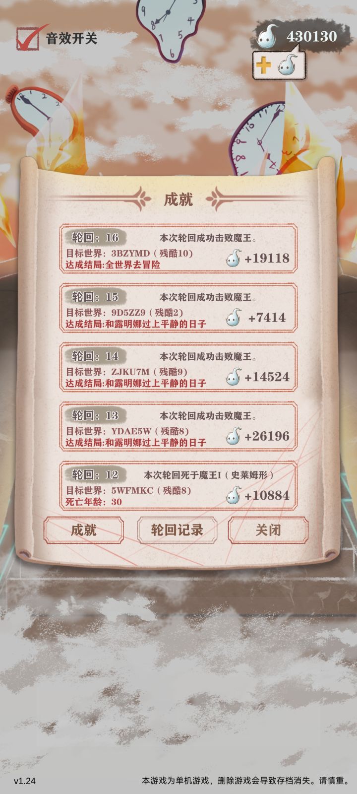 16回合通过。残10用的真剑盾格,基本不用sl(不钓鱼)。思路是前期爬跑加只读完故事,靠魅力理财,招格挡护甲装备,高格挡后下本比较轻松,拿到噬魂后可通除兽人外其他本。缺点是打兽人本遇到行刑官会掉半血,打不过。三围60 280 110左右。神器没特意sl,无液态。拿灼烧加毒腺,打侍从比较吃力,总计7条命打过。光环总量如图,其他的没截。