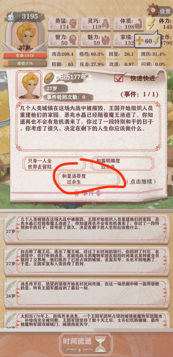 第三点也是很多人没讲过的,关于父亲帮忙砍柴,第三次帮忙可以加魅力,但是千万不要在十岁前就帮了三次,十岁前不加的,而且十岁前刚好是锻炼体质的黄金期,帮忙种田也是一样的,要十岁后的第二次第三次才加家境。