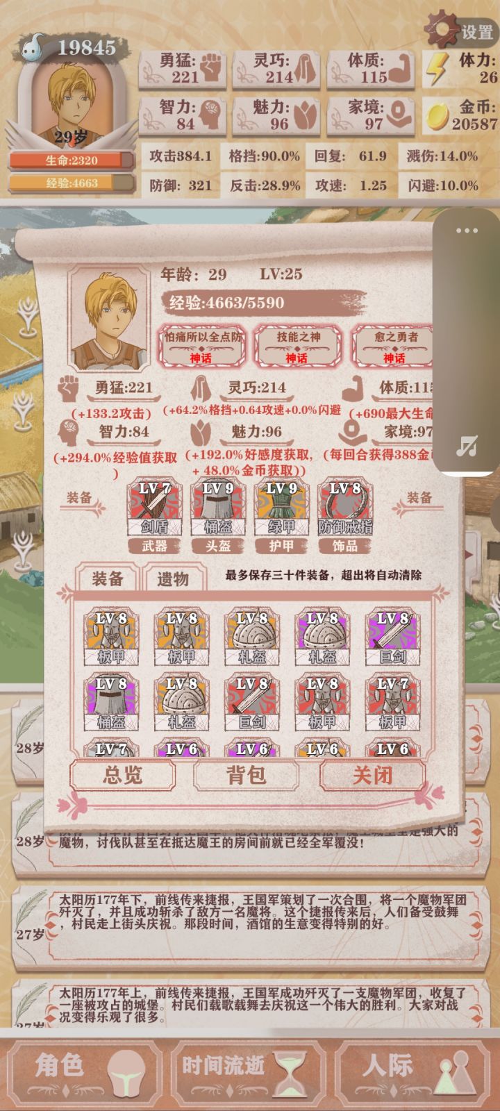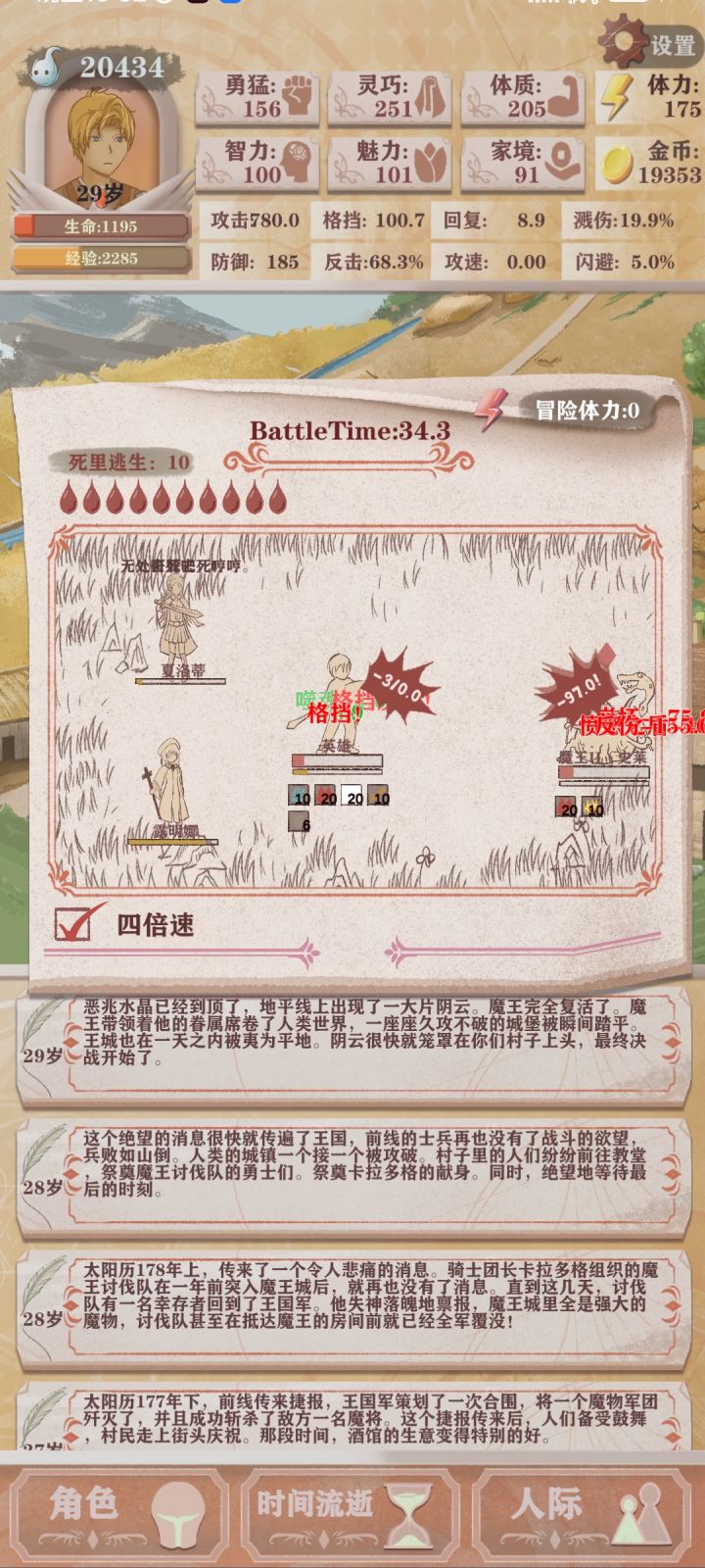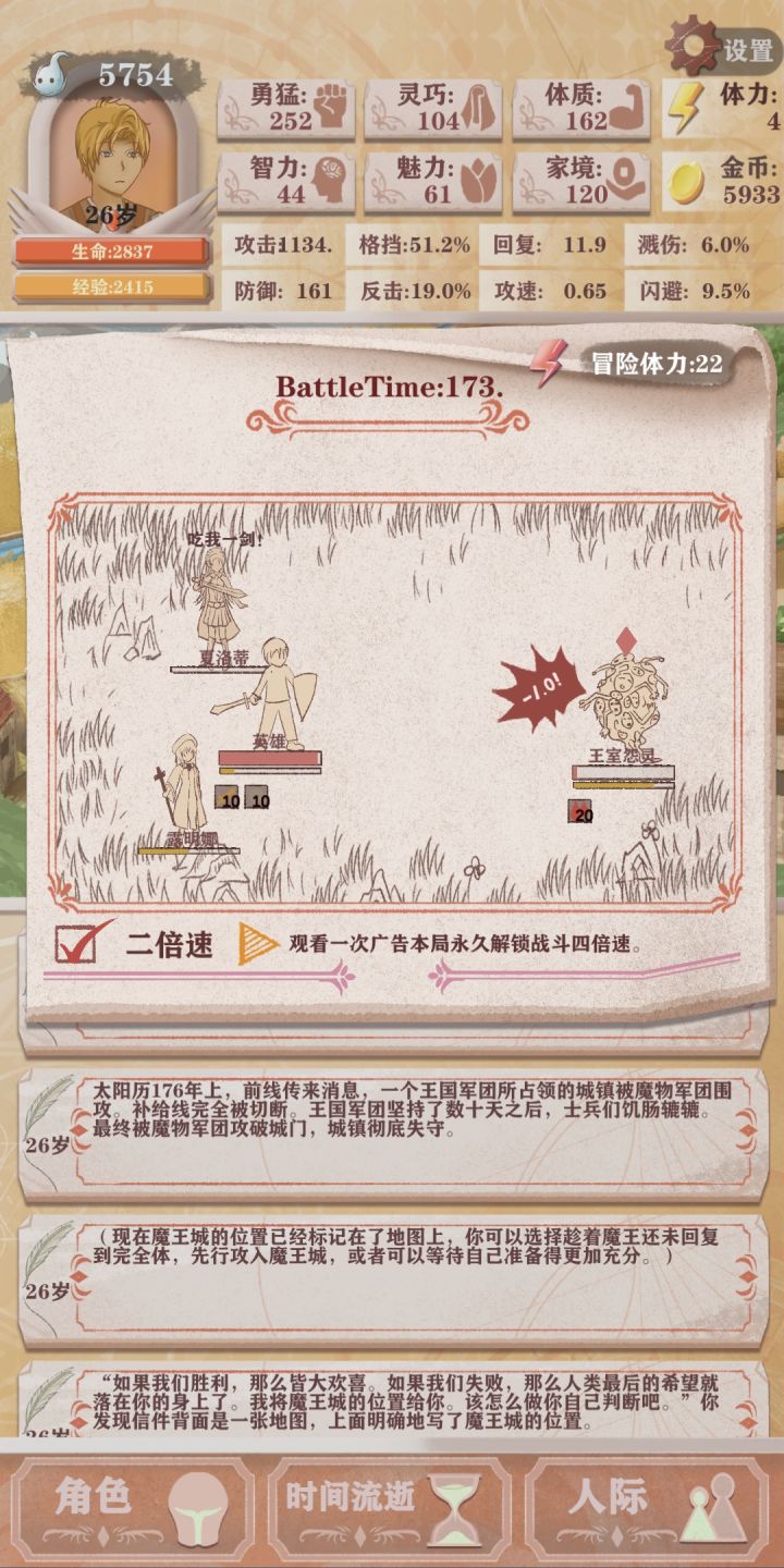 英雄是从群众中来,所以也应该到群众中去,从小就逮着小孩子薅魅力,多摔跤♂,遇到两位女主的好感度事件,耗20体帮忙搞基层的都能加魅力,魔王看了都不肯打过来,给我苟到29岁,攻速2.7,你上你也行😂