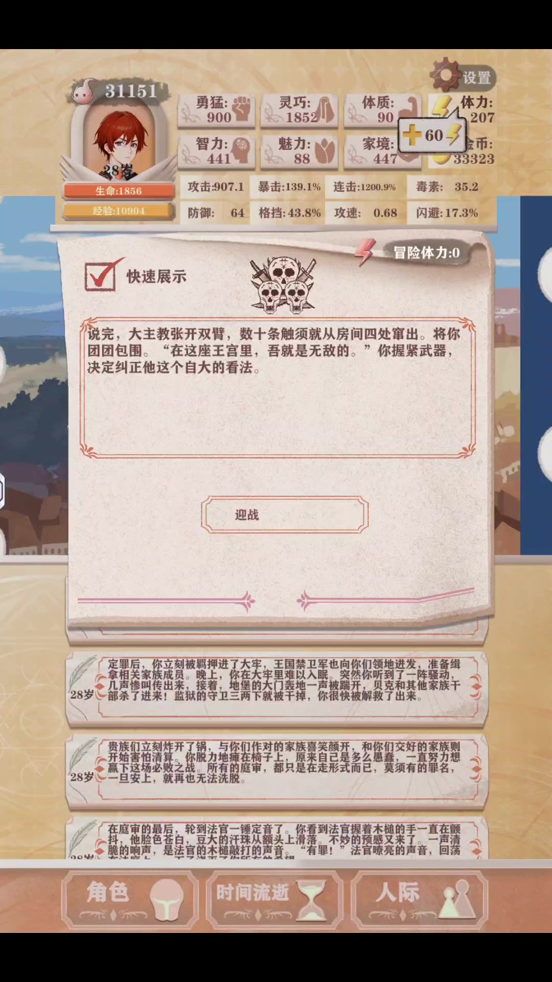 16体力 恶兆一加智力到140开始升家境,营销小麦鹿皮画册遇到低价商品投资几次,投资的钱高于物品单价就停,价格特别低就多投资几次育,涨价的货屯着数量多就营销。 恶兆2把智力升到200之后全加敏捷 恶兆3先加智力,升完家境按敏捷智力2比1加,拉布好感满前把力量加到150过图三拿智慧之刃 恶兆4开始差不多能满许愿,智力400敏捷1800力量900通关图四应该很简单了魔王更不在话下