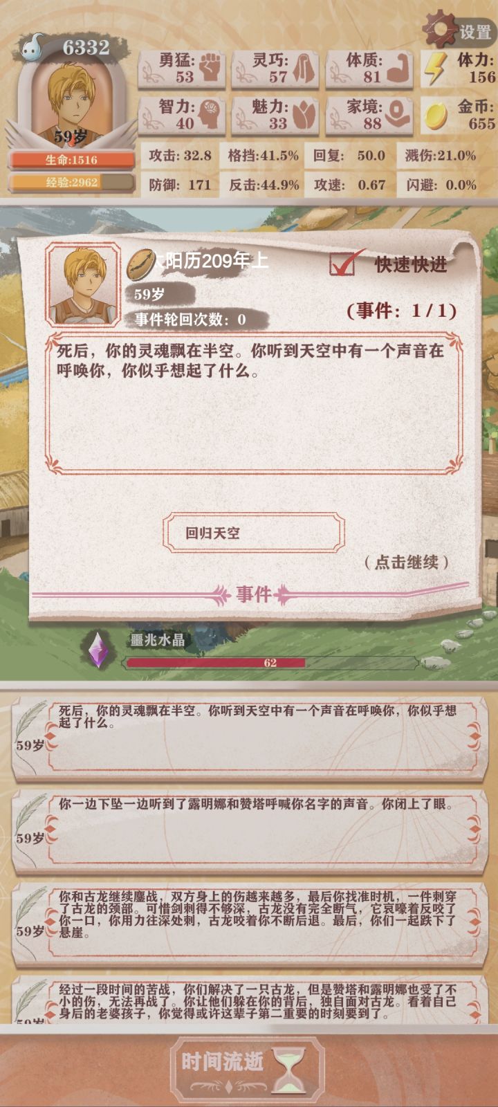 这个游戏我只玩了半天,但对通关理解还是有一些的下面是个人见解想通关还是得会刷钱和装备,刷钱最重要的是智力跟家境,第一波噩兆智力、家境要不低于10,第二波噩兆两个不低于20,这两个尽可能提高,因为最后打魔王的强化需要大量的资金,主要靠健身房和小巷子里的春药。不过前提是要保证能打得过怪,你的实力可以通过最新的秘境能不能通过百分之80,能通过就是稳的,不行就得看特殊遗物和重生。