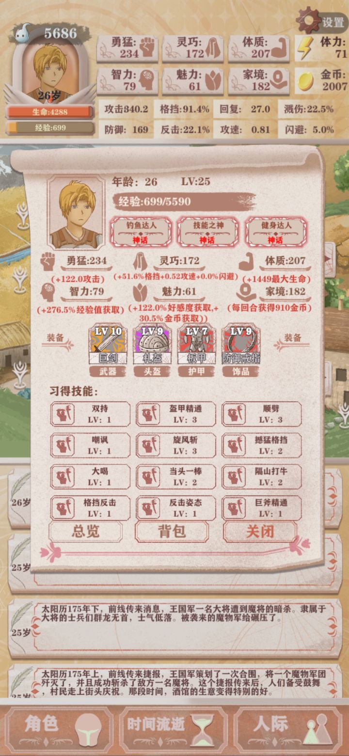 超神的一局,差点三属性上200,其实继续苟3回合肯定能上200的,变态的是没有点石成金家境竟然差点也破200,没有打工达人最后竟然拿到了大富翁成就。健身达人+钓鱼达人+技能之神太厉害了,这属性放在残酷2里面太浪费了