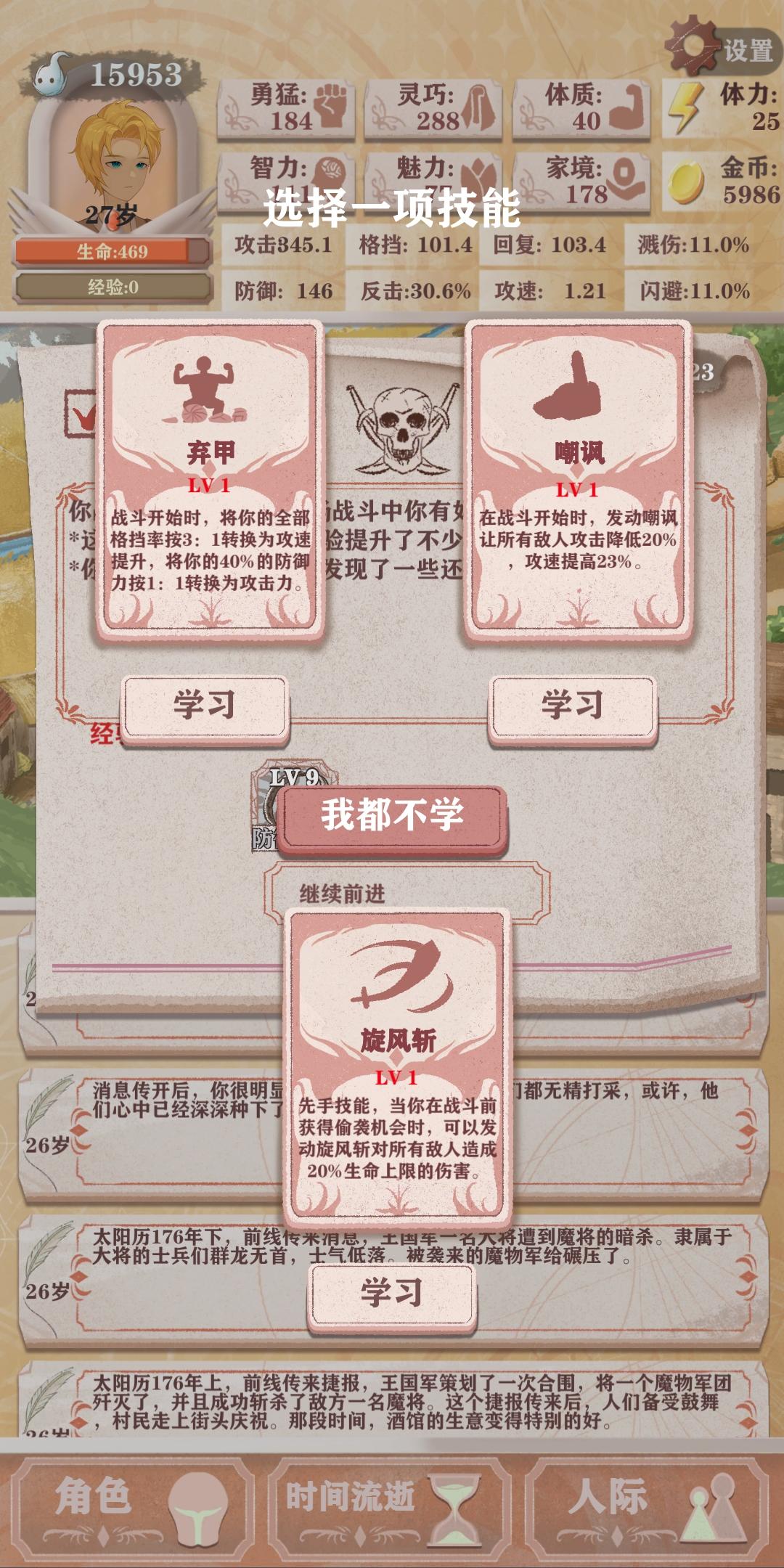 在线问,很急,我是愈勇天赋,数值如图,能选弃甲这个技能吗