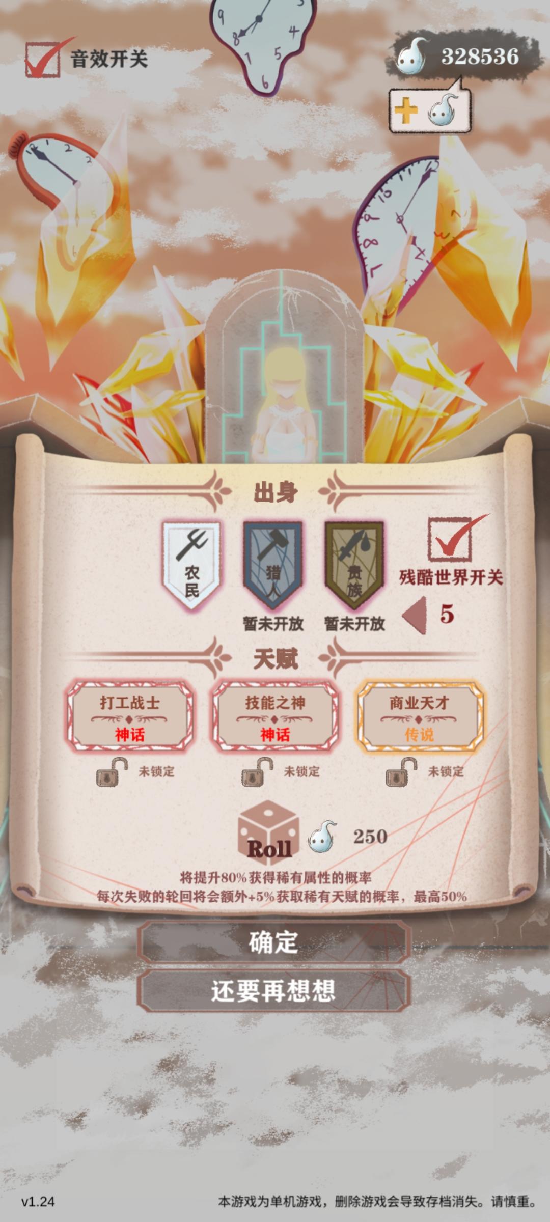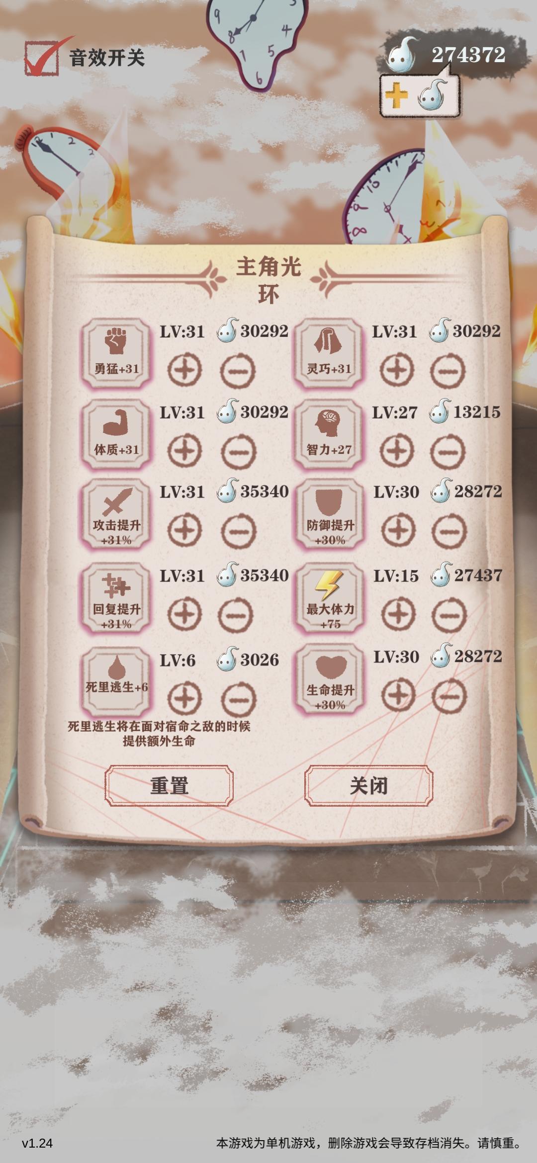 大佬们求教一下 想刷点魂 但是害怕高残翻车 就去打了普通 虽然很容易的过了 但突然发现和很多大佬的数据差好多 那些四五百都是咋做到的……我大概每次都把小孩的魅力也买了 酒店吃喝调酒全做 3次钓鱼 老奶奶和教练出来也买了 体质买到了400一次就停了 家里的力量和体质到了40体也就停了 冒险每次50体 好感度到了300就没和妹子触发剧情 剩下的体力全部家里锻炼灵巧 然后打魔王感觉数值也一般 也没啥钱😓😓😓难道必须每回合都sl么?求指点一下 感觉我光环也不差啊……