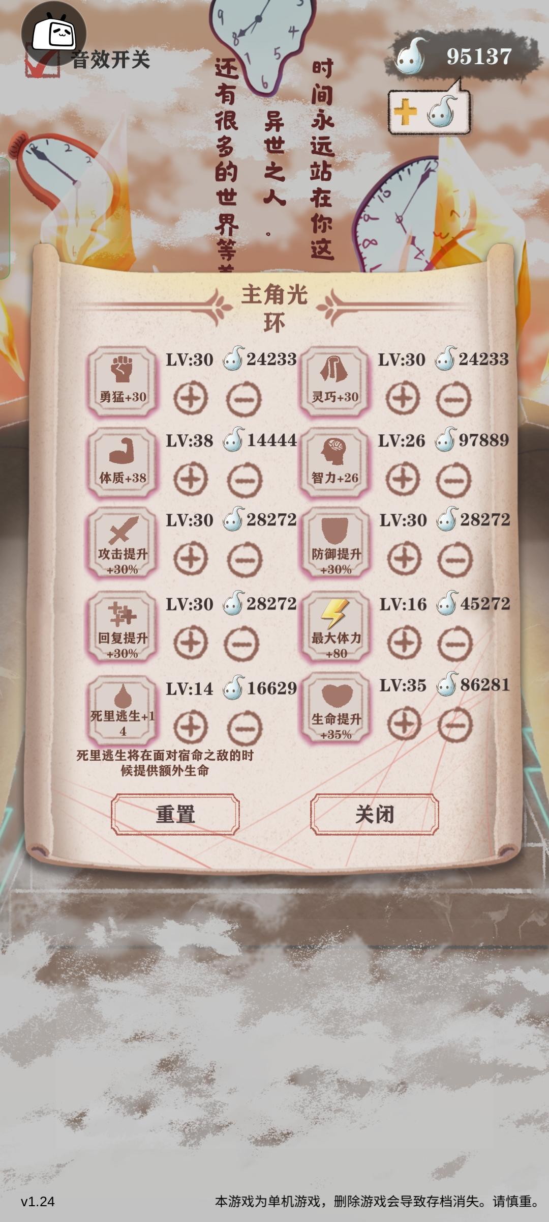 这个图是我狂推体质过残8的,😂点的很平均哈哈哈,但其实死里逃生不用那么多,我比较怕死。。。不一定对,就自己摸索着玩。😝