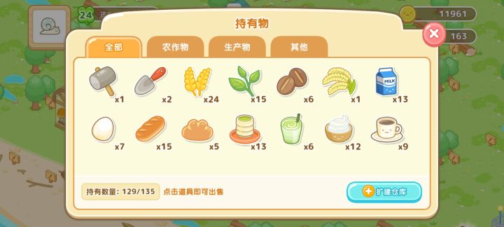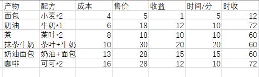 结论2:生产产物属于额外收入,比直接卖农作物收入高,但由于生产需要时间,所以农作物还是会爆仓卖掉的,生产产物收益里茶>抹茶,奶油>奶油面包,因此除了火车需要(攒4-6个就好了,一辆火车最多就要二级产物4-6个),心愿单活动需要,平时都生产茶和面包不生产另一种😤