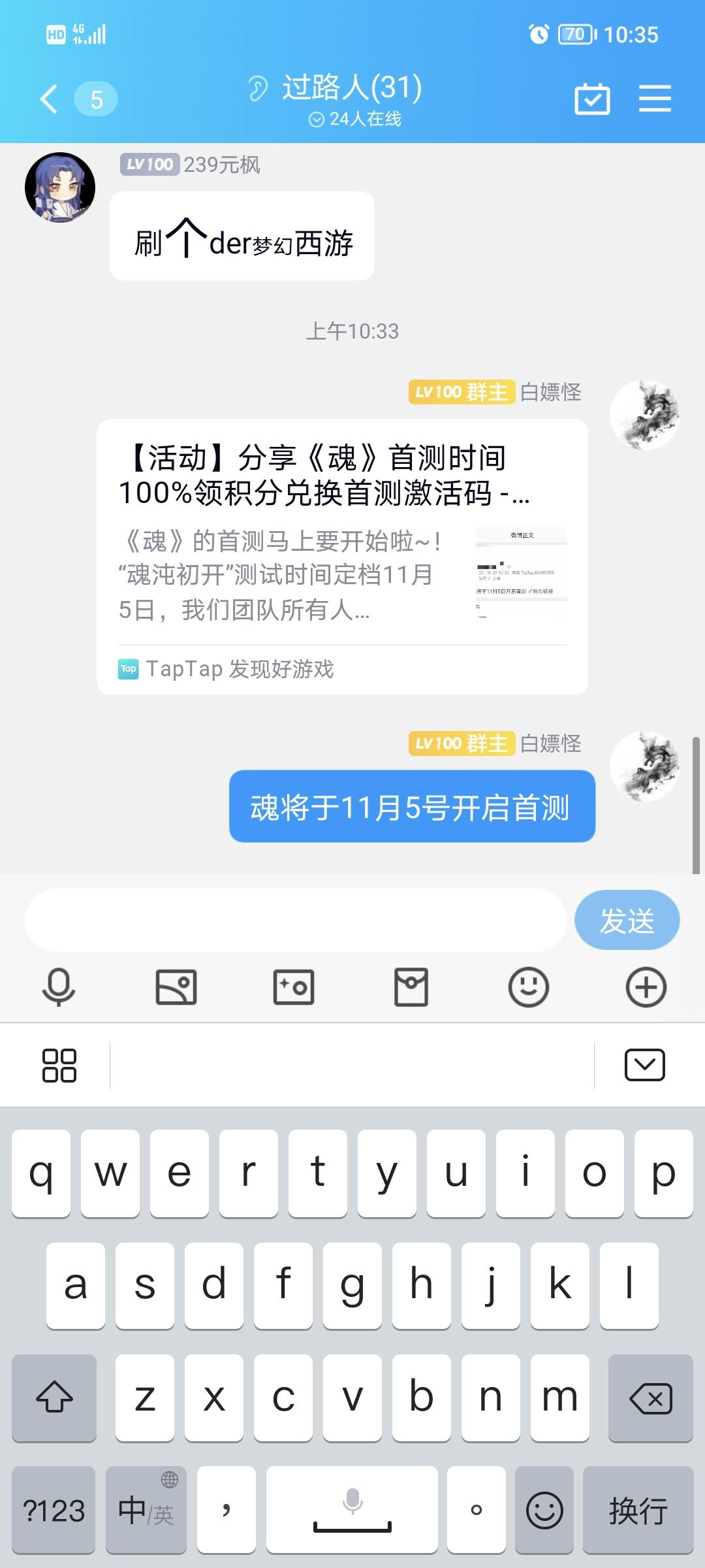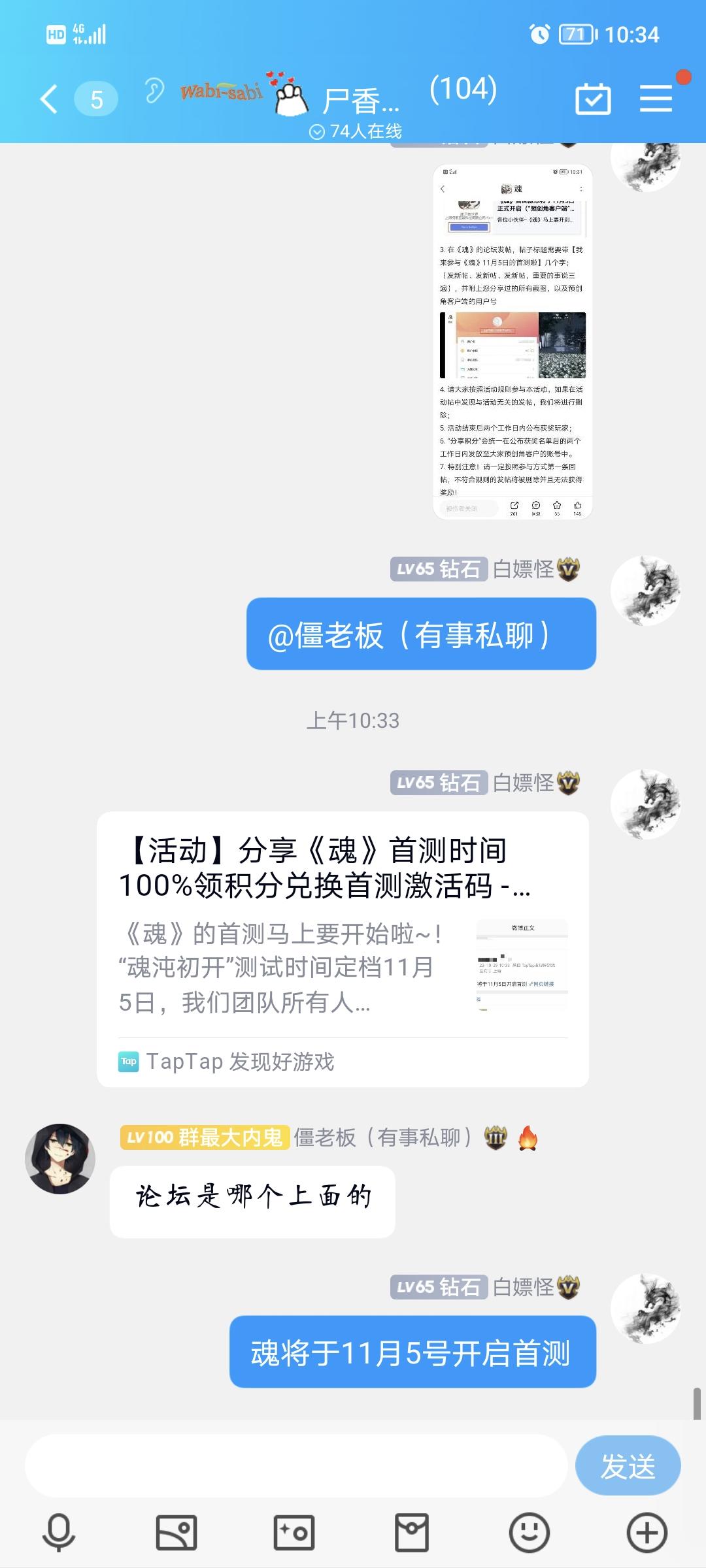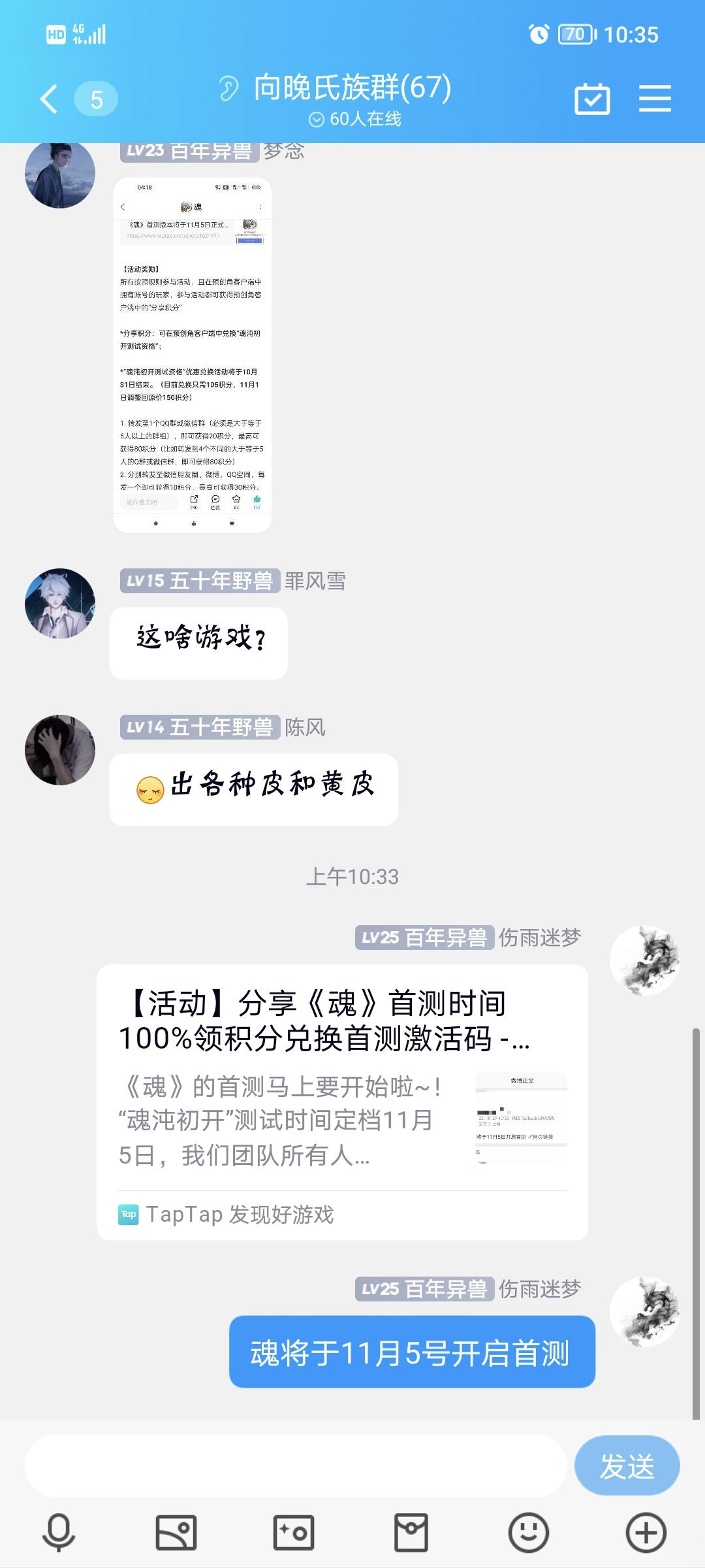 《魂》将于11月5号开启首测以按要求分钟大群,请官方给予资格😆