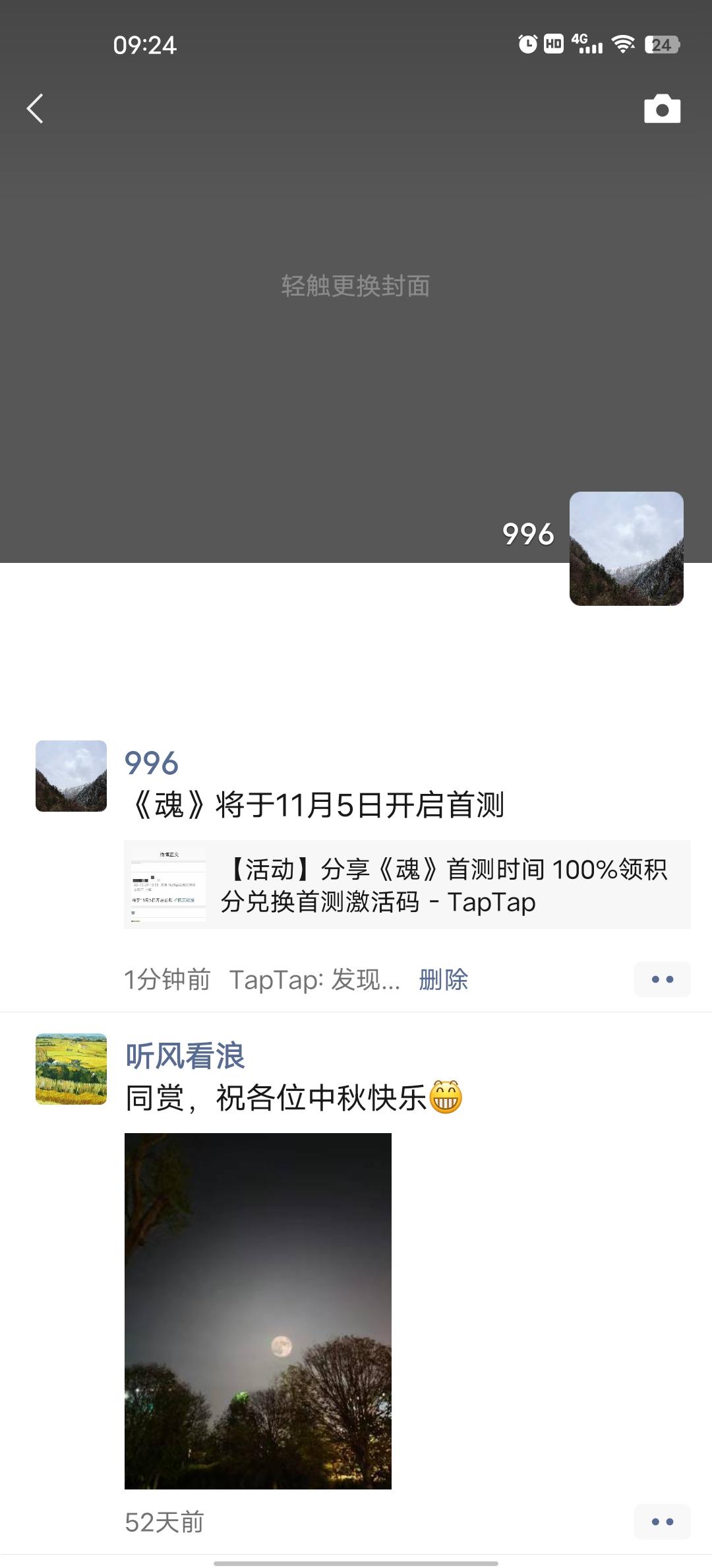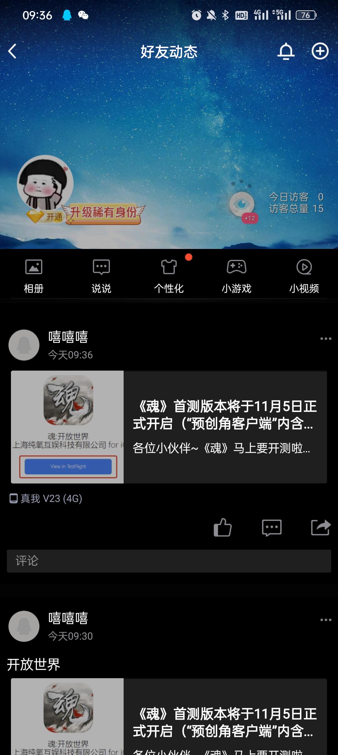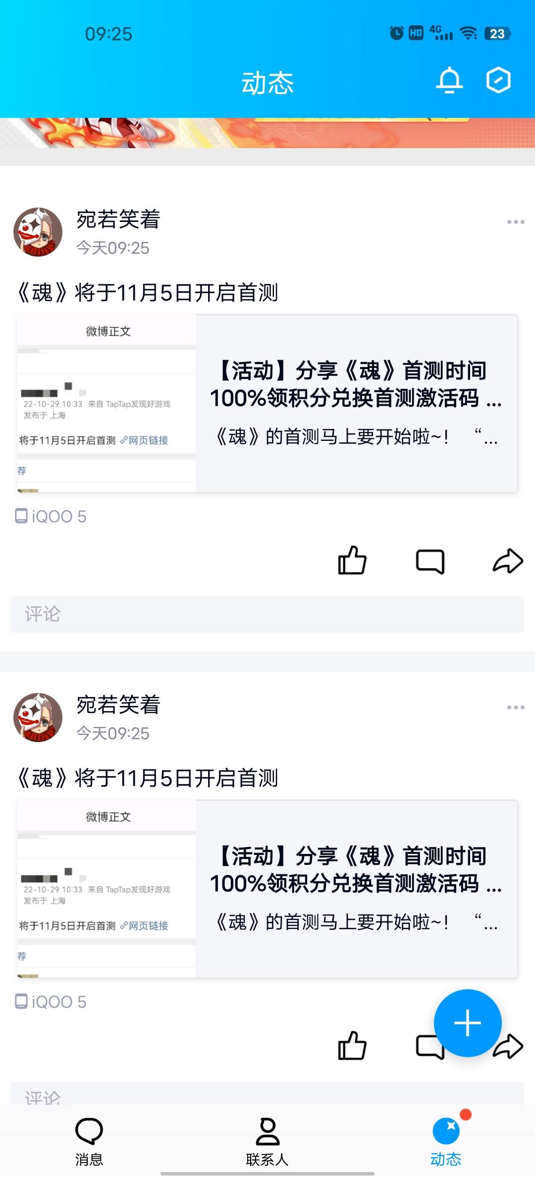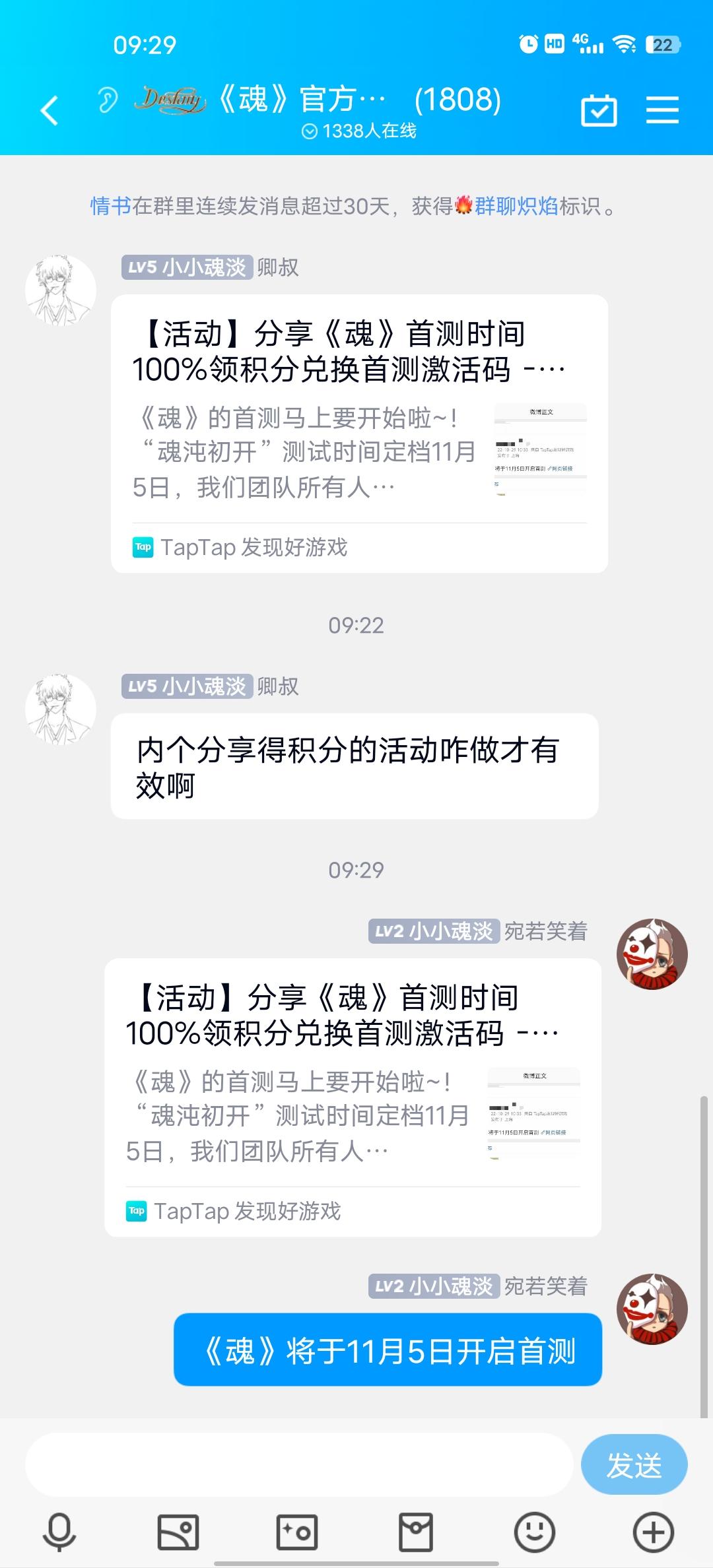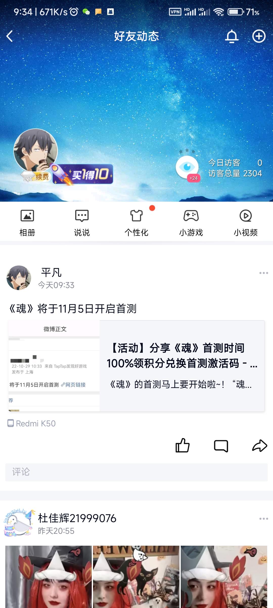 微信朋友圈+QQ动态+QQ4个群也就是100积分,感谢官方大大, 我来参与《魂》11月5号的首测了