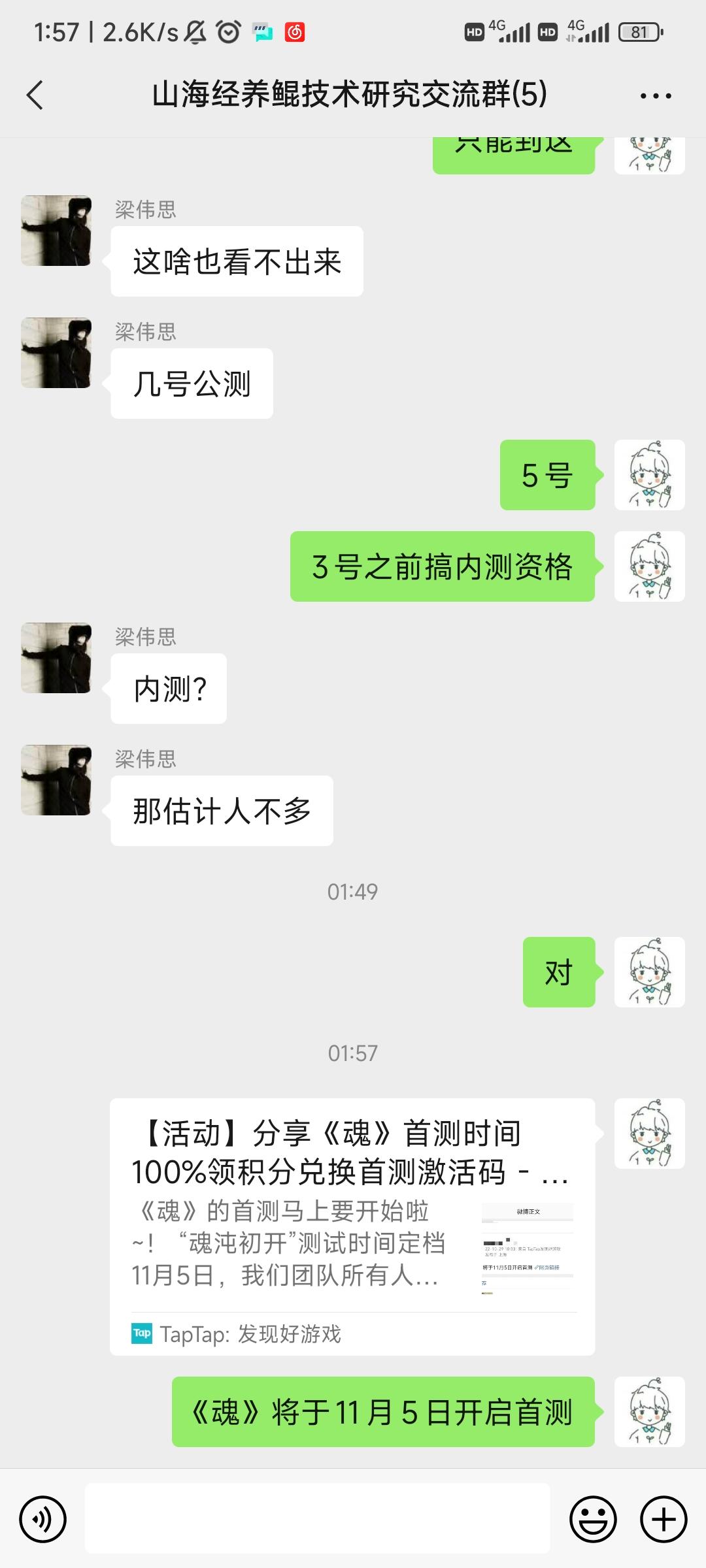 我来参与《魂》11月5日的首测啦,预创角用户号:165162093
