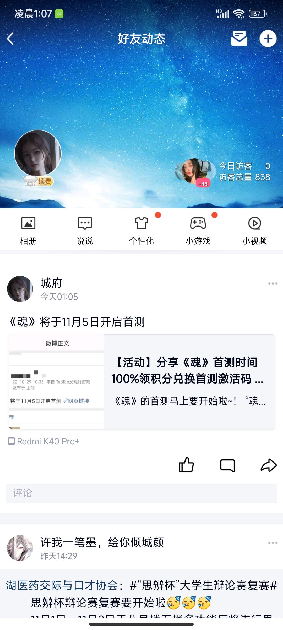 我来参与《魂 》11月15号的首测啦
