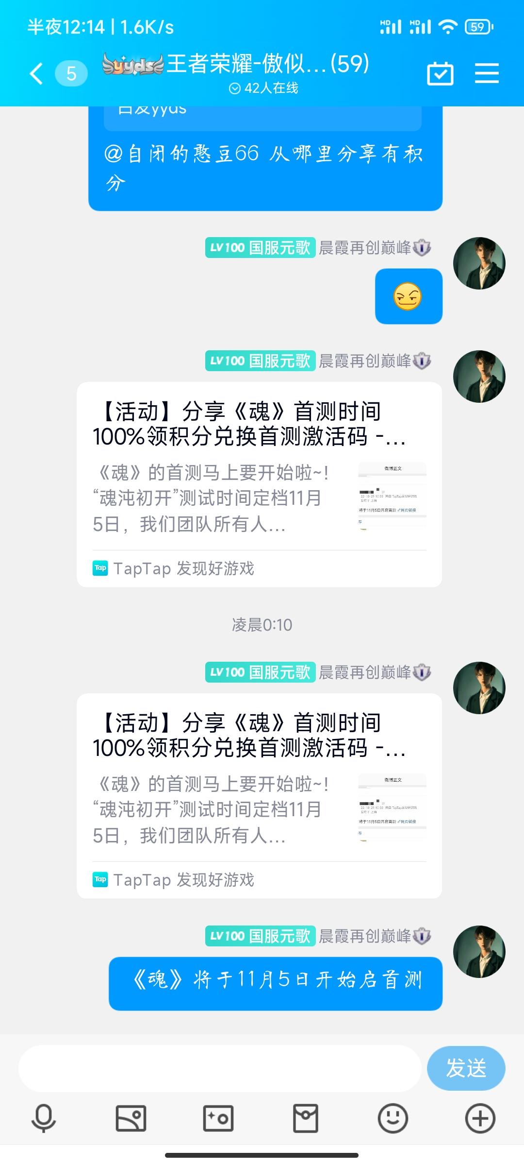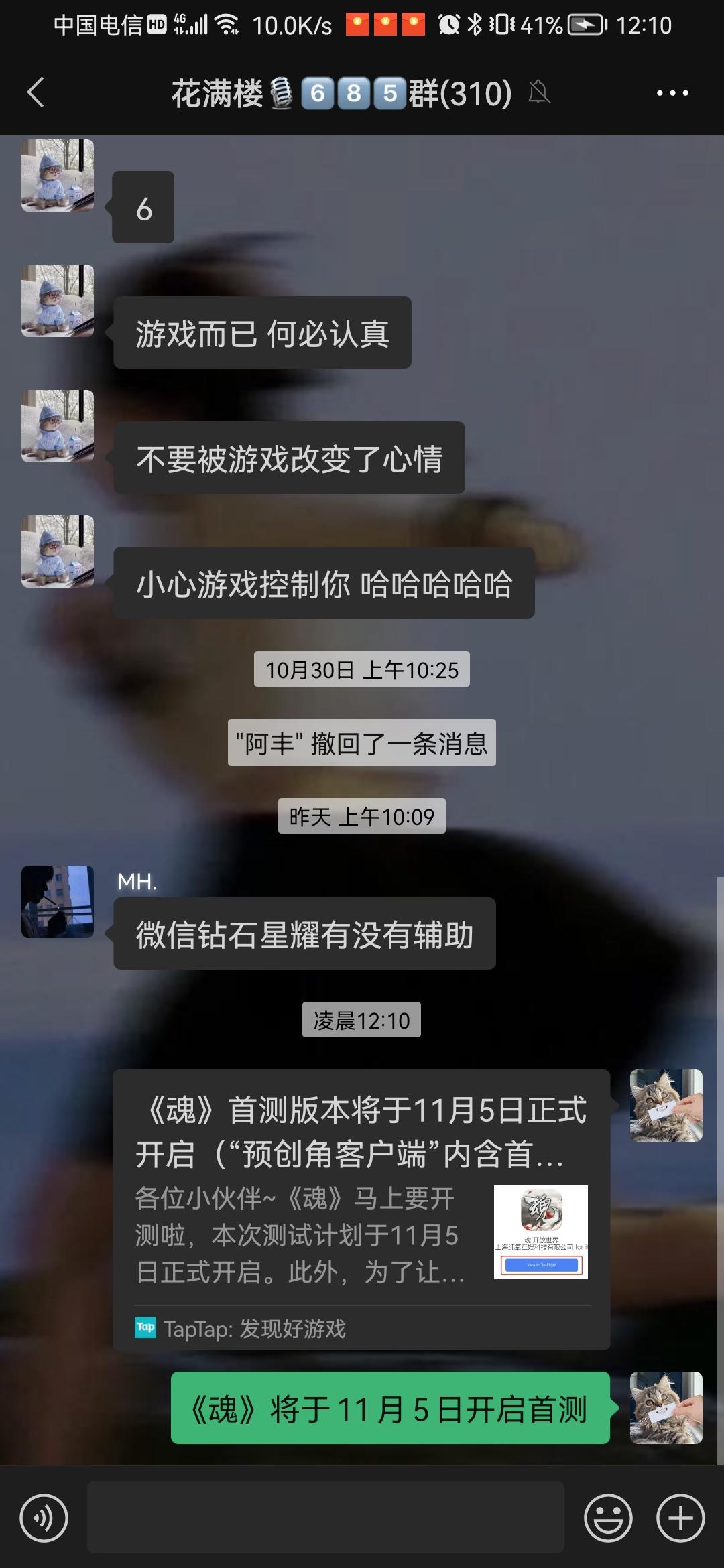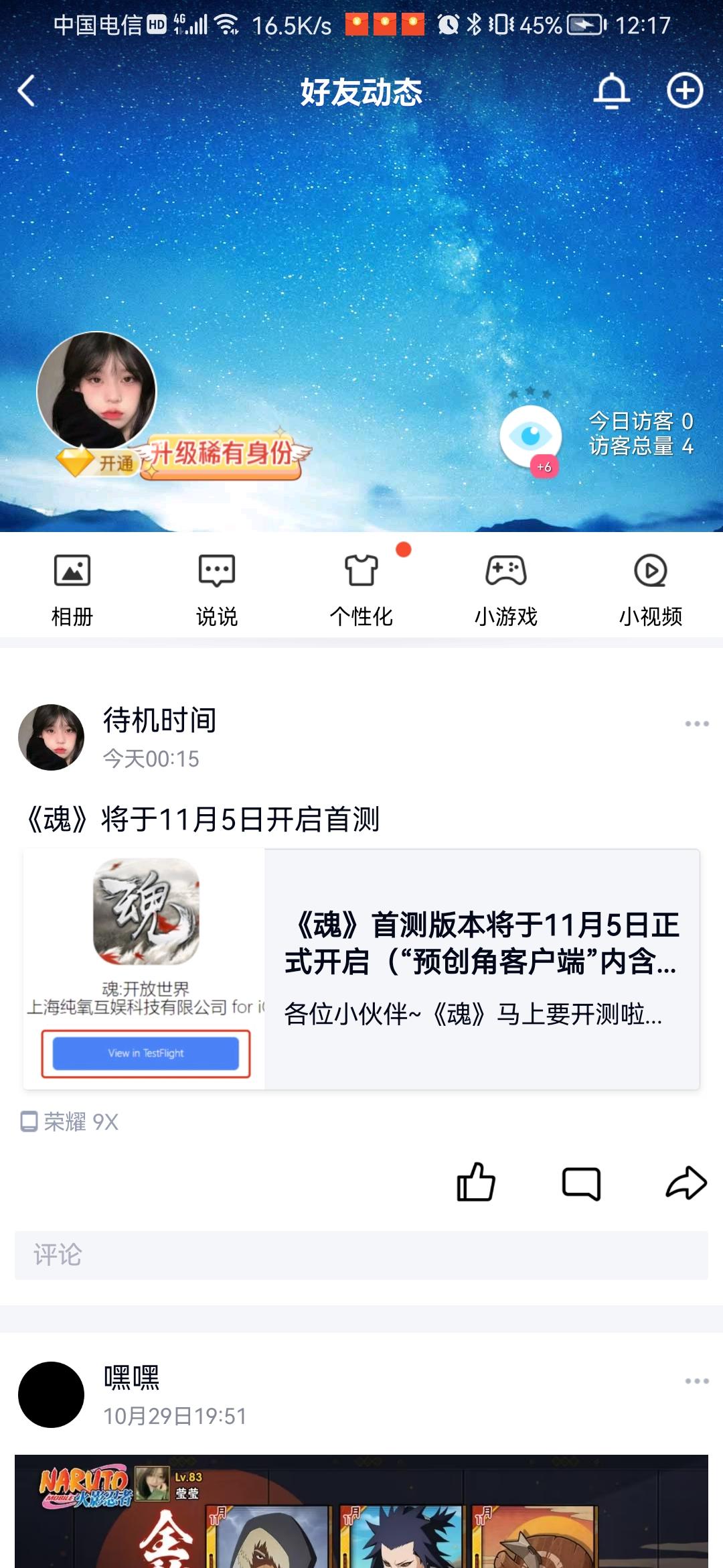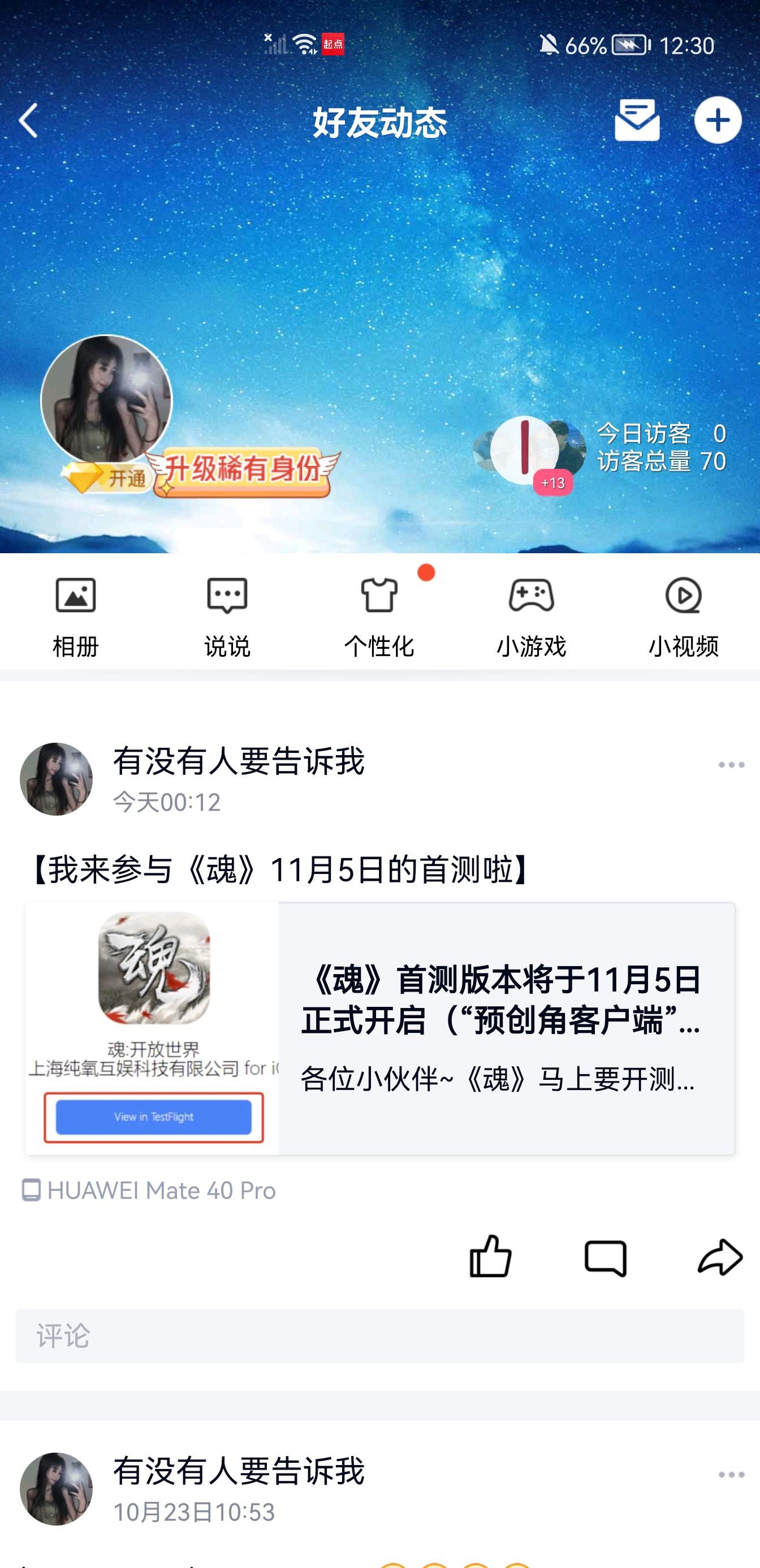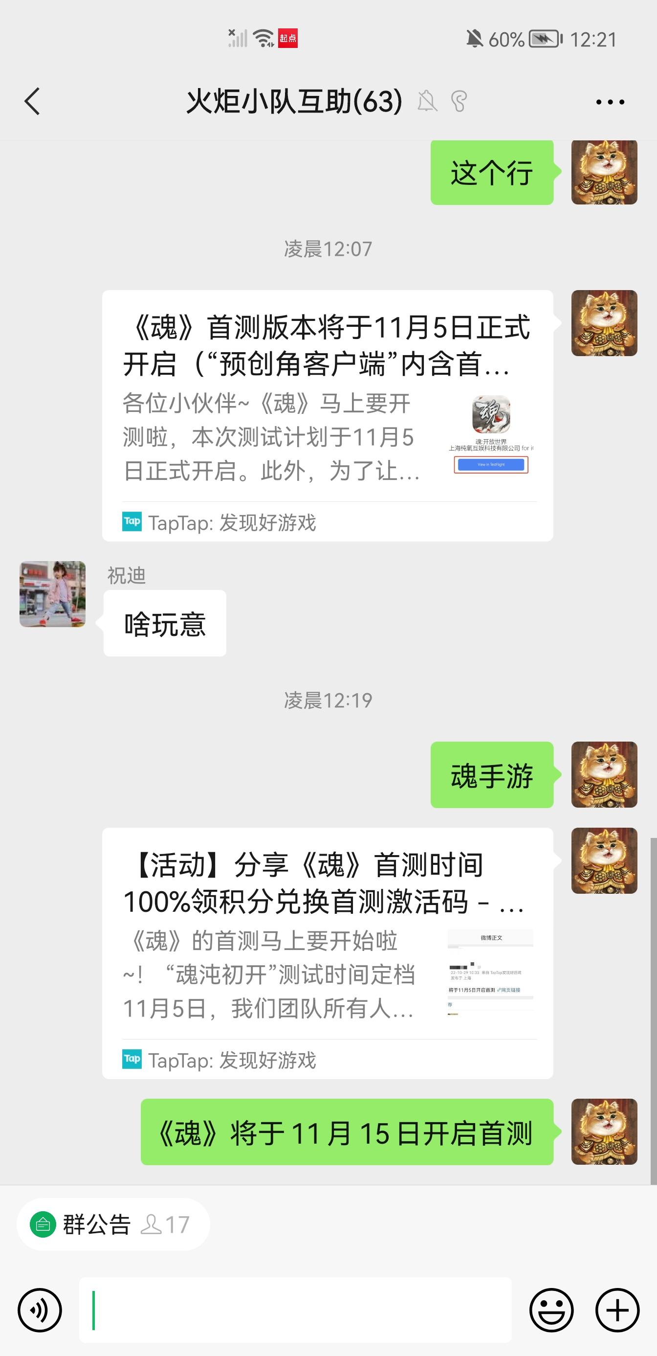 我来参与《魂》11月5日首测啦!!!!2个微信群 , 2个qq群 一个朋友圈 一个空间 分给一下吧求求了😌😌😌😌