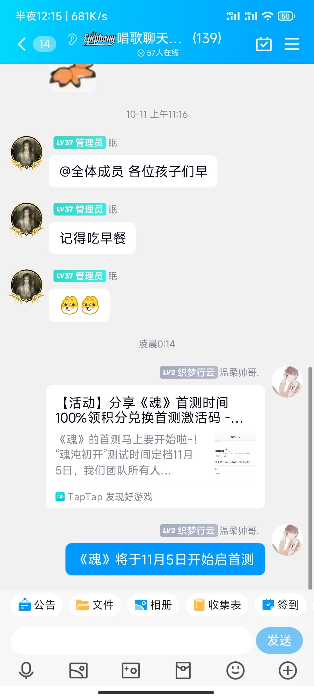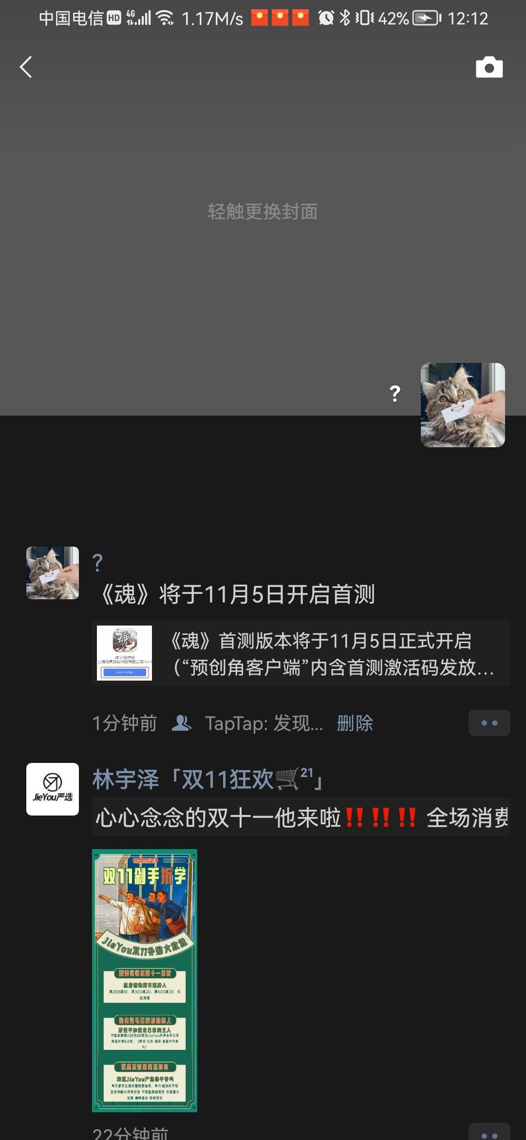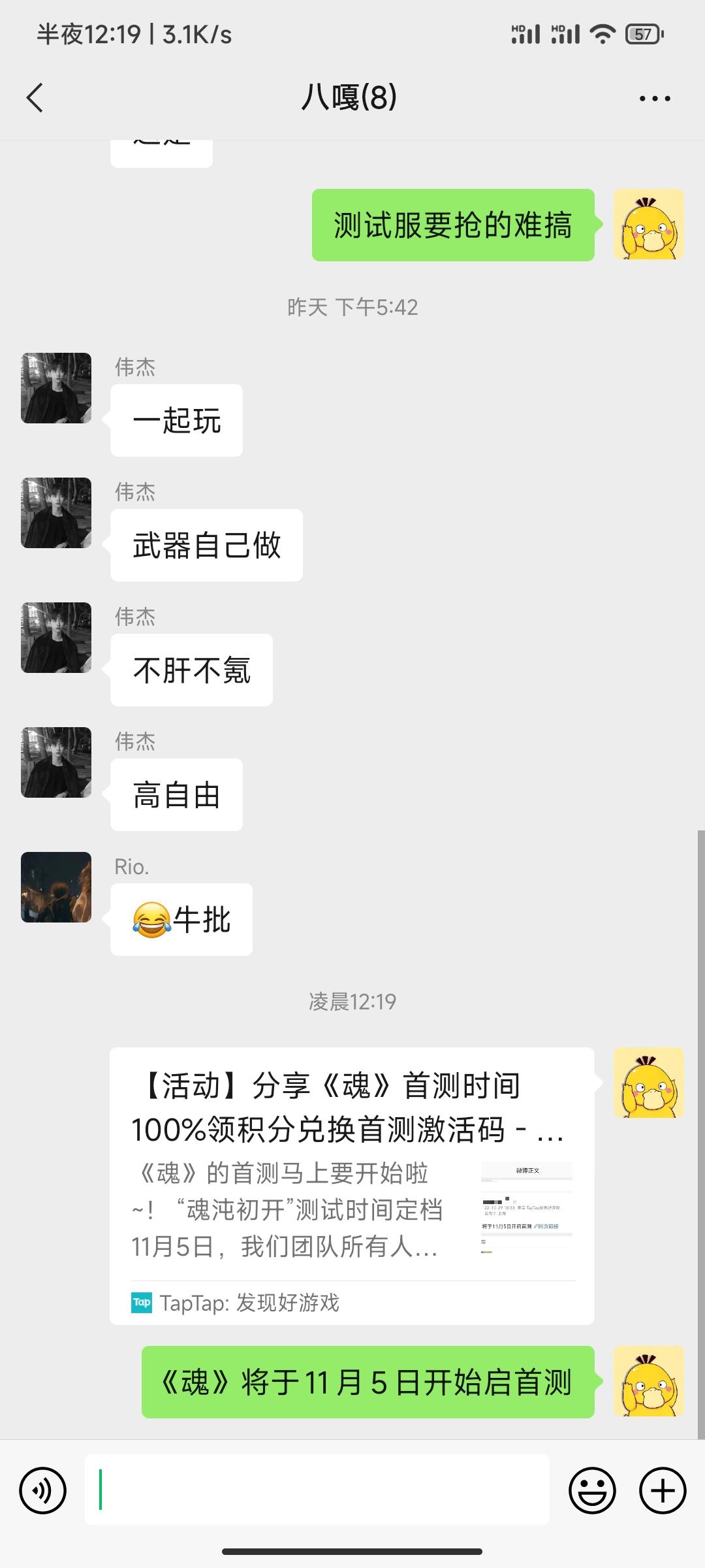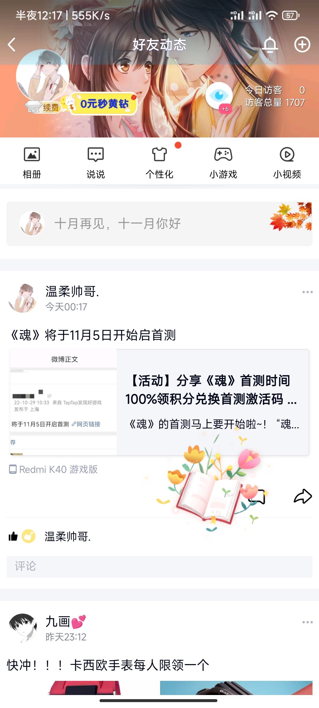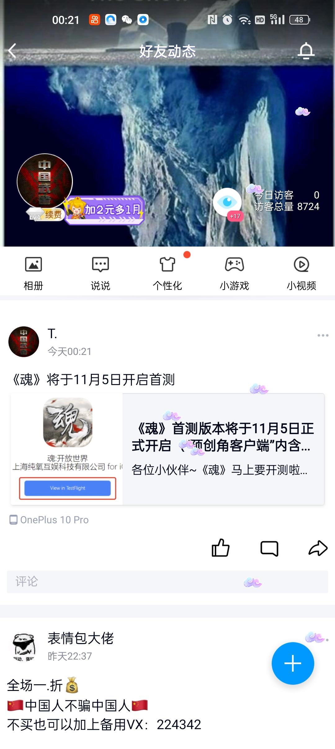 我来参与《魂》11月5日首测啦!!!!2个微信群 , 2个qq群 一个朋友圈 一个空间 分给一下吧求求了😌😌😌😌