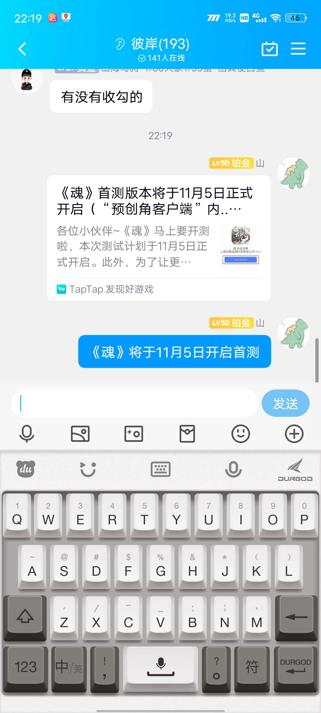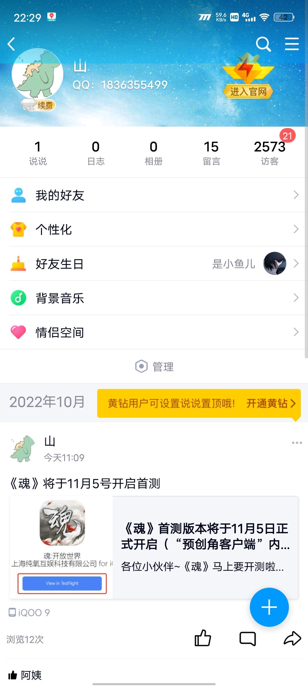 我来参与《魂》11月5日的首测啦! 用户号165157577来自TapTap