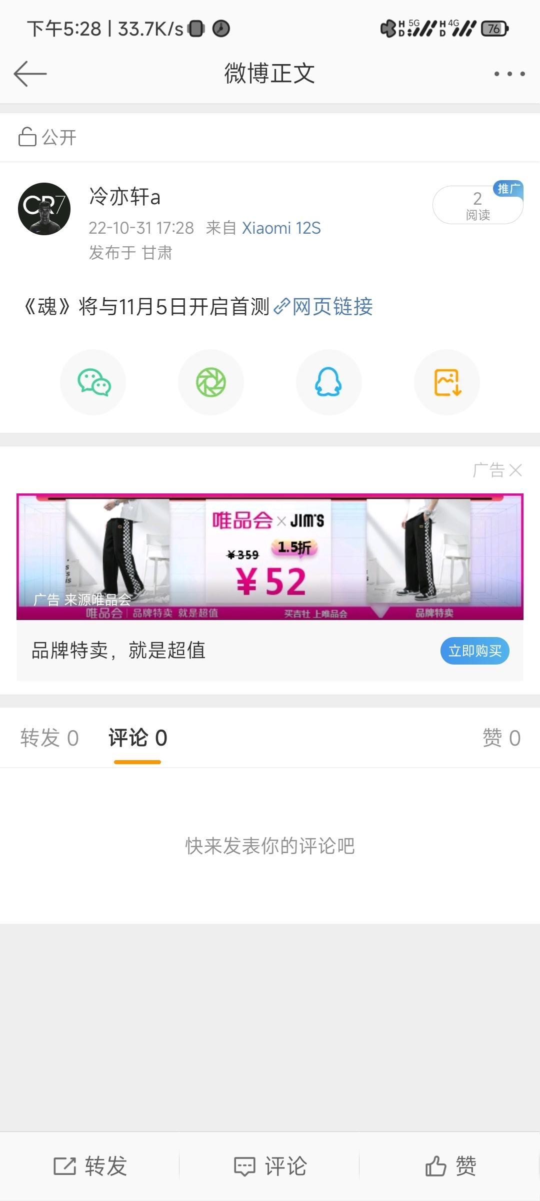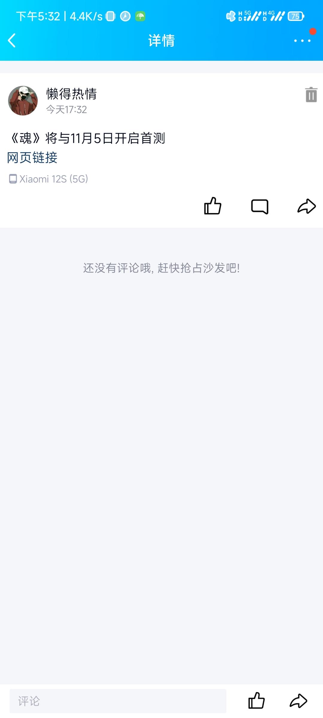 我来参与《魂》游戏11月5日首测啦!